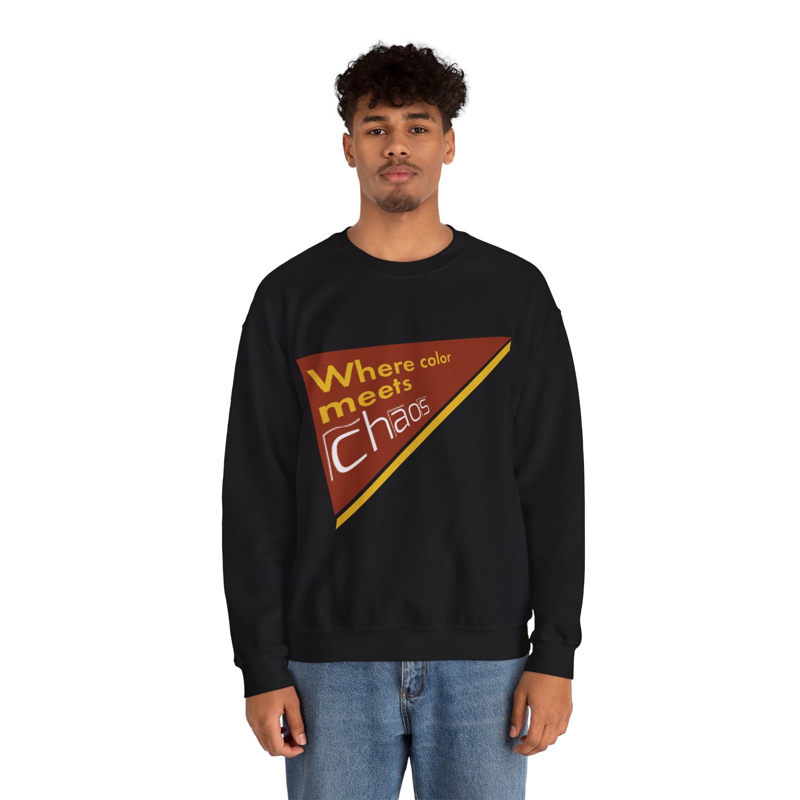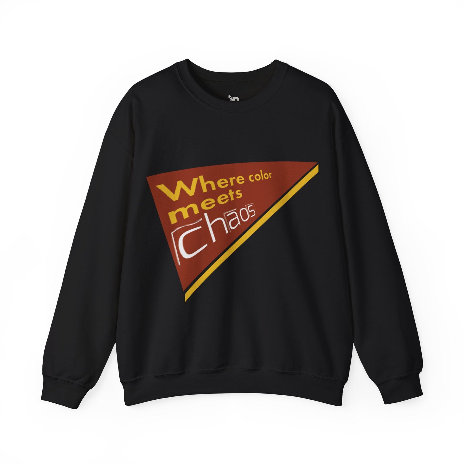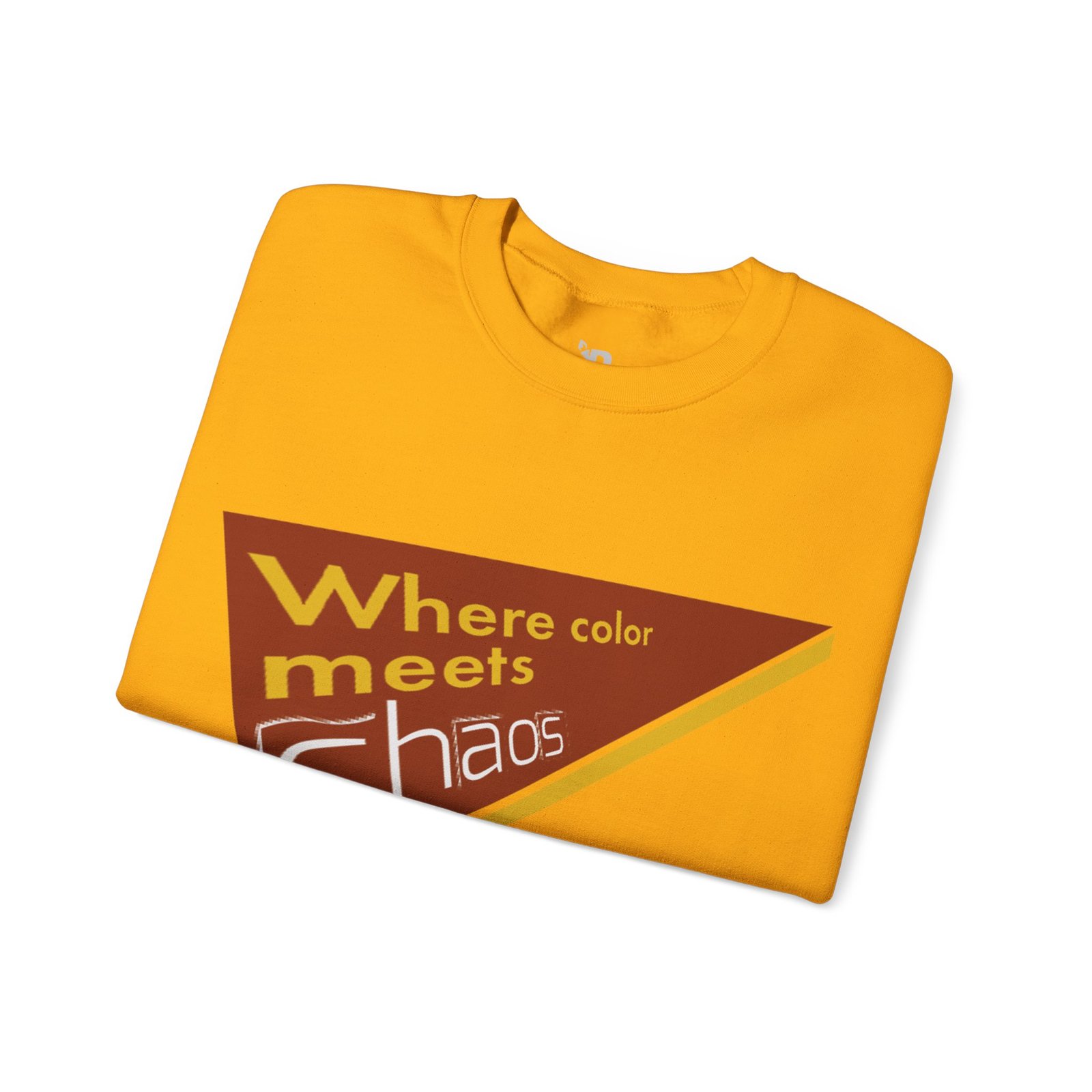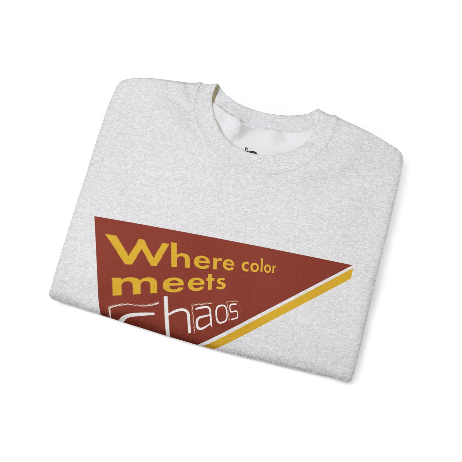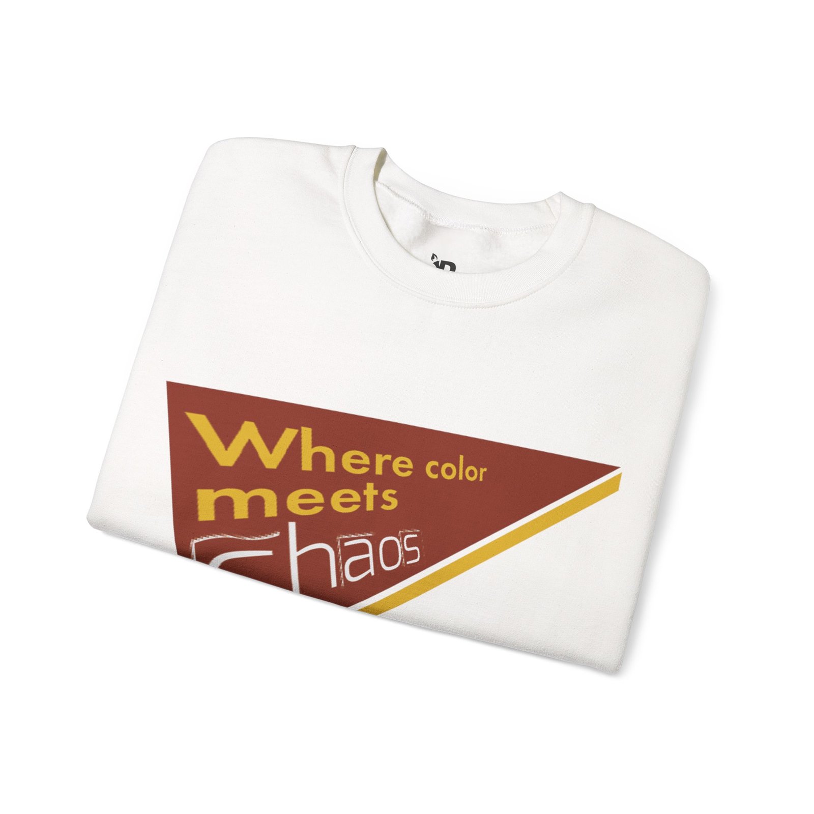 This cozy crewneck sweatshirt wears its personality on the chest — a retro-inspired geometric patch in warm rust, gold, and cream that reads “Where color meets chaos.” It feels like wrapping yourself in a creative mood board: soft midweight fabric, a relaxed classic fit, and thoughtful construction that keeps the shape wash after wash. Wear it while sketching, running errands between galleries, or teaming with jeans for a low-key studio day. The design nods to vintage graphics without shouting, so it blends into everyday life while still starting conversations about color, process, and playful disorder.