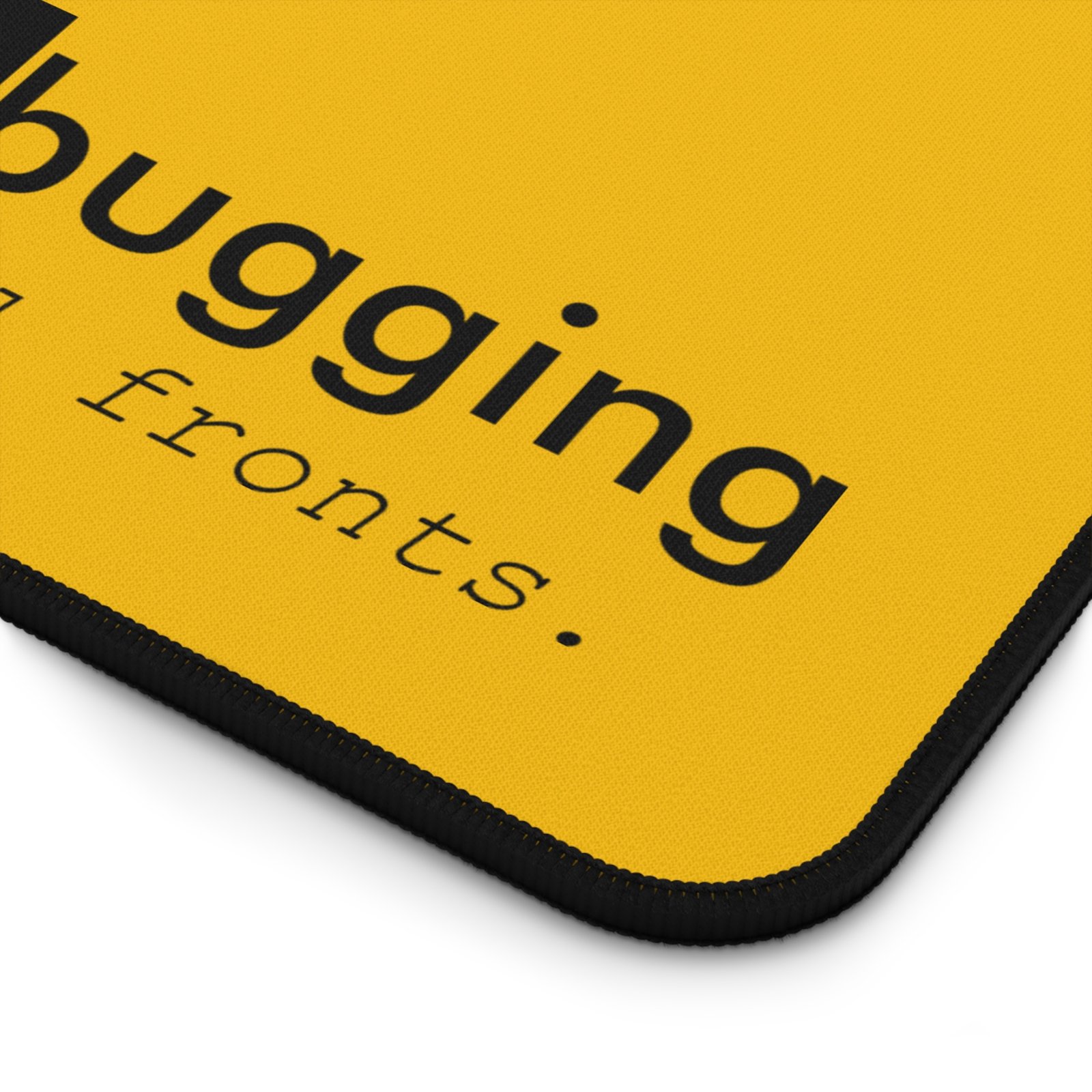 Bright, sturdy desk mat designed for focused creators and coders. A warm mustard surface shows off a minimalist “Debugging on all fronts.” motif that quietly celebrates problem-solving. The neoprene top gives a smooth, consistent feel for writing, mouse control, and sketching, while the anti-slip backing keeps the mat anchored during intense work sessions. Hemmed edges add durability so the mat keeps a clean profile on your desk day after day. It’s compact enough for smaller setups yet roomy enough to hold keyboard and mouse when you need a steady, colorful workspace.