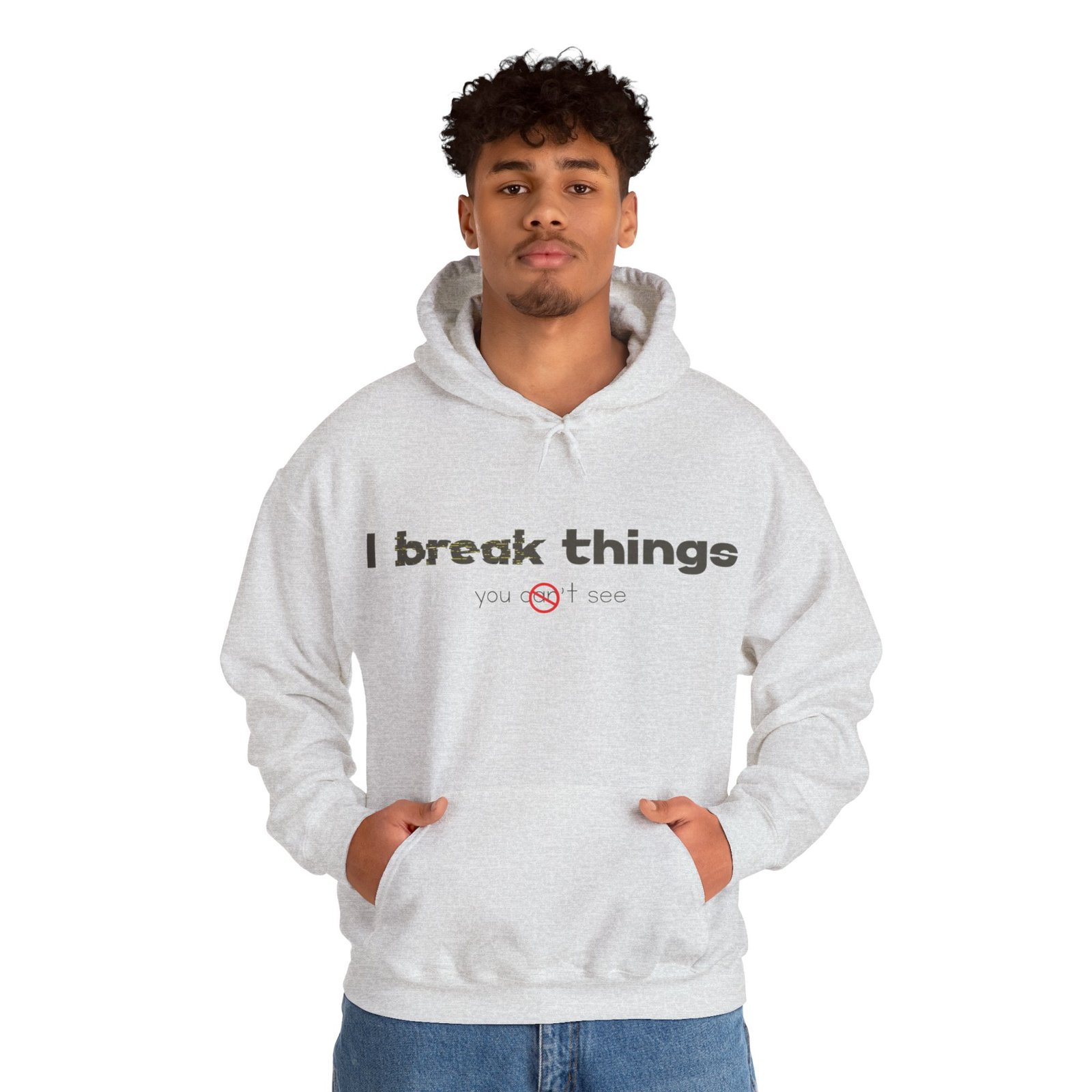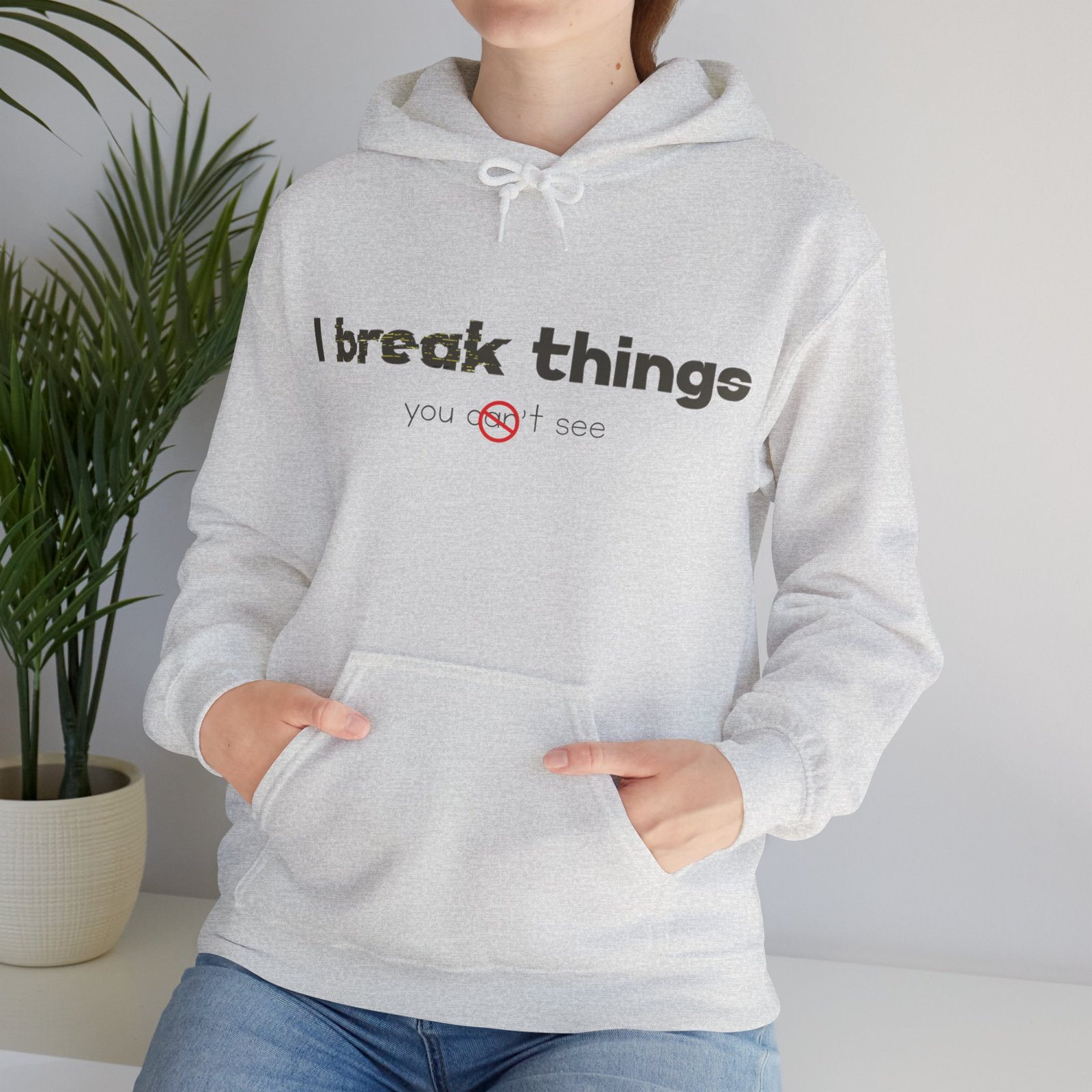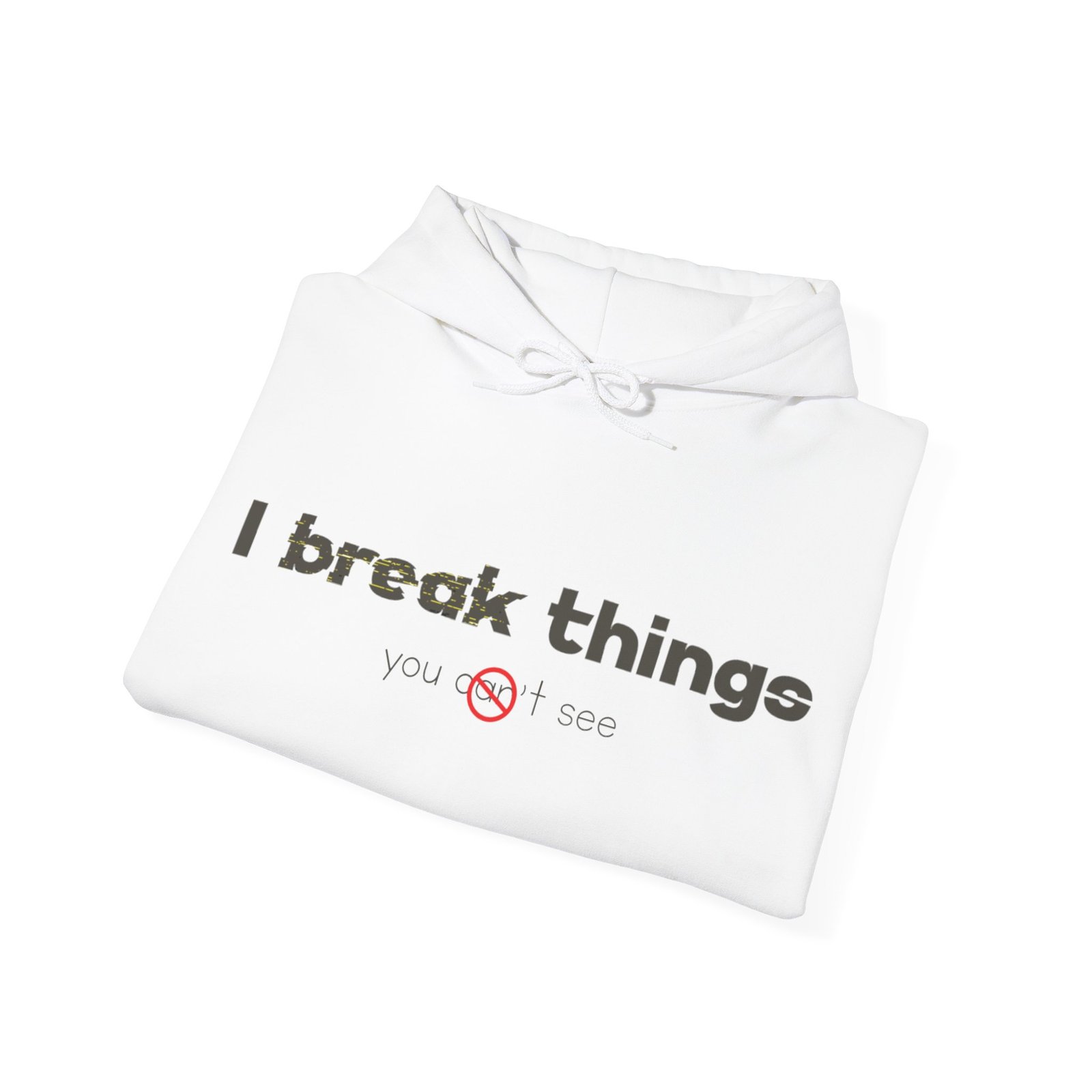 This cozy hooded sweatshirt speaks with quiet confidence. The clean white canvas and minimalist text—”I break things”—gives it a wry, honest voice that fits someone who owns their flaws and laughs about them. Wear it for late-night coding sessions, coffee runs, or layered under a jacket when the weather turns. The roomy kangaroo pocket and soft medium-weight fabric make it feel lived-in from day one. Subtle details like a color-matched drawcord and double-lined hood elevate the simple silhouette, while ethical sourcing and OEKO-TEX-certified dyes give it a better footprint. It’s comfortable, durable, and quietly expressive—made to be part of everyday routines and small, defiant moments.