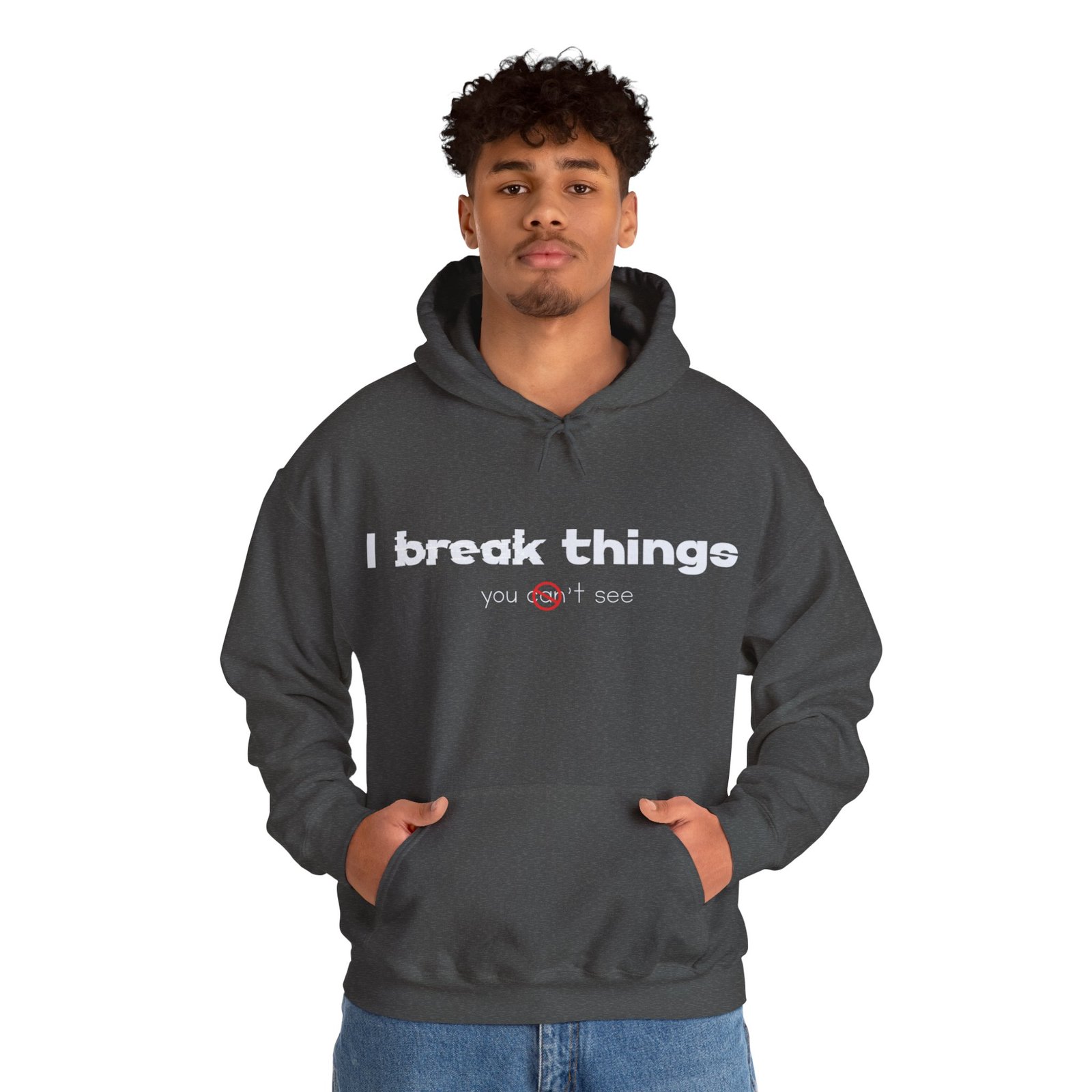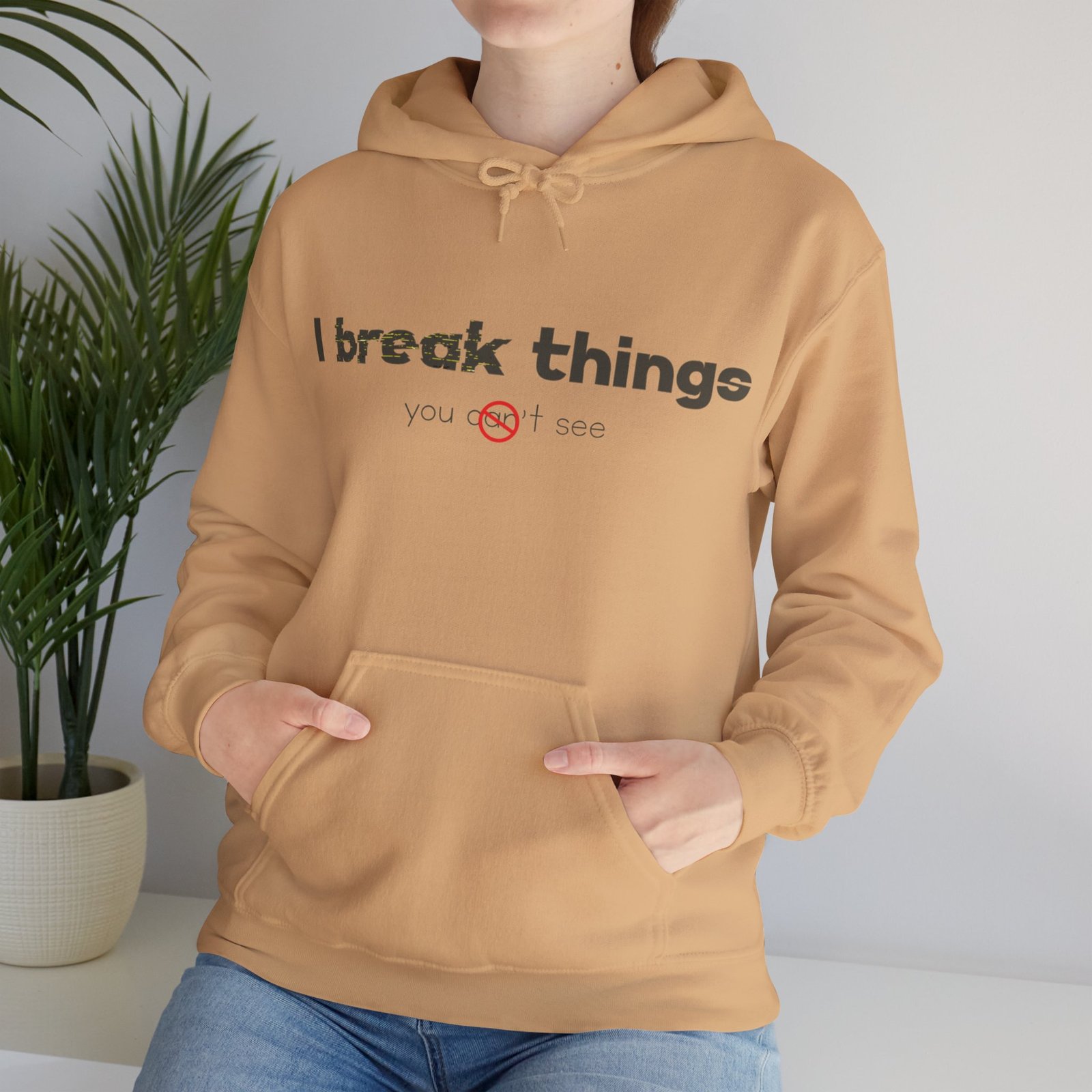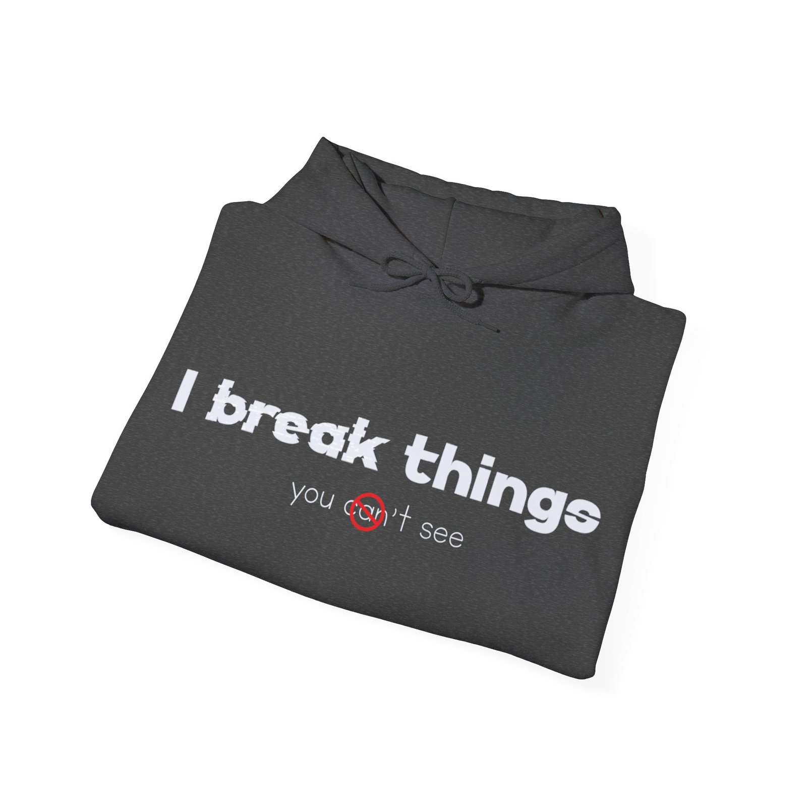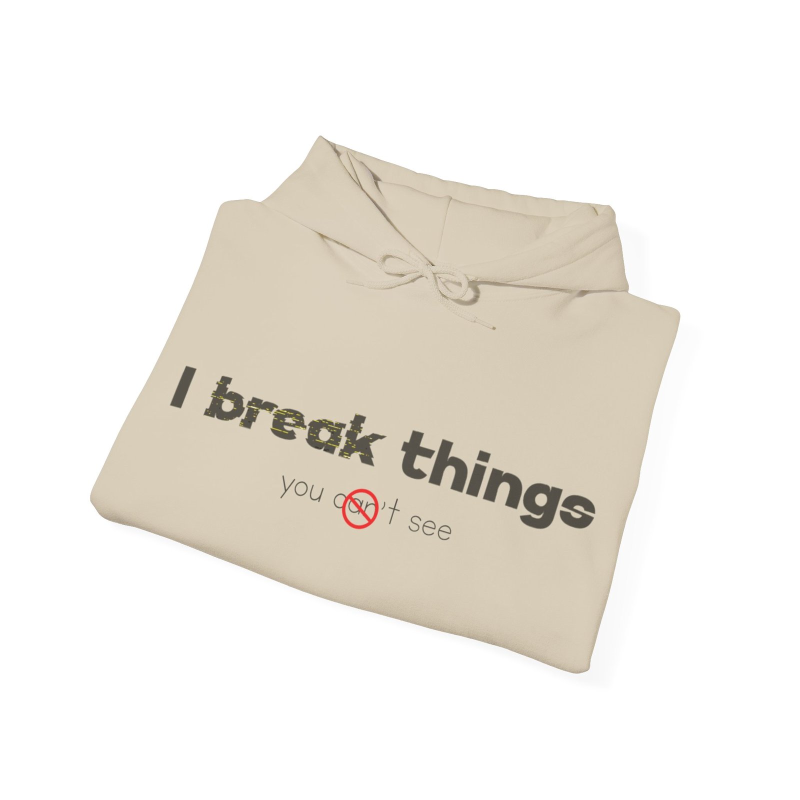 This cozy hooded sweatshirt speaks with quiet confidence. The clean white canvas and minimalist text—”I break things”—gives it a wry, honest voice that fits someone who owns their flaws and laughs about them. Wear it for late-night coding sessions, coffee runs, or layered under a jacket when the weather turns. The roomy kangaroo pocket and soft medium-weight fabric make it feel lived-in from day one. Subtle details like a color-matched drawcord and double-lined hood elevate the simple silhouette, while ethical sourcing and OEKO-TEX-certified dyes give it a better footprint. It’s comfortable, durable, and quietly expressive—made to be part of everyday routines and small, defiant moments.