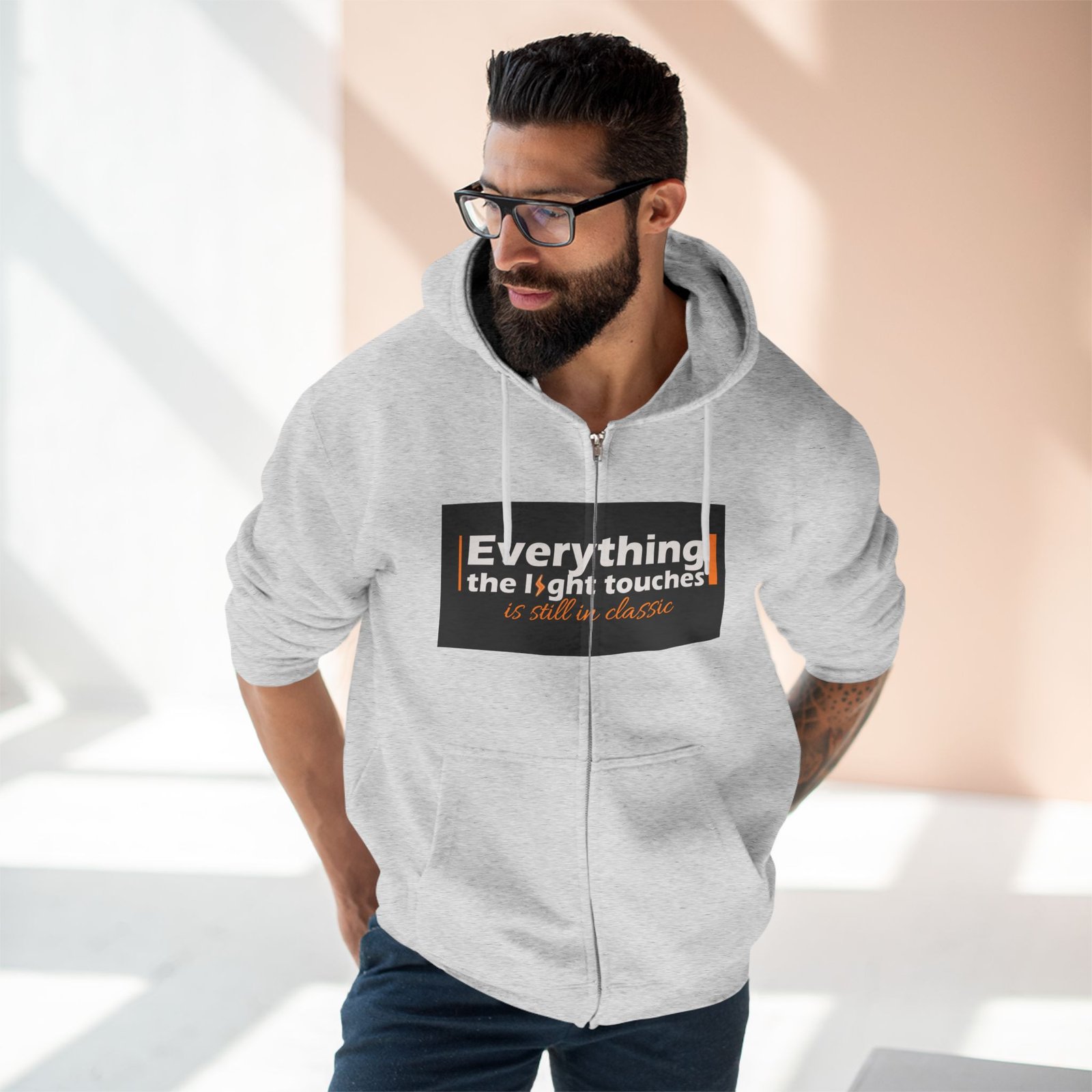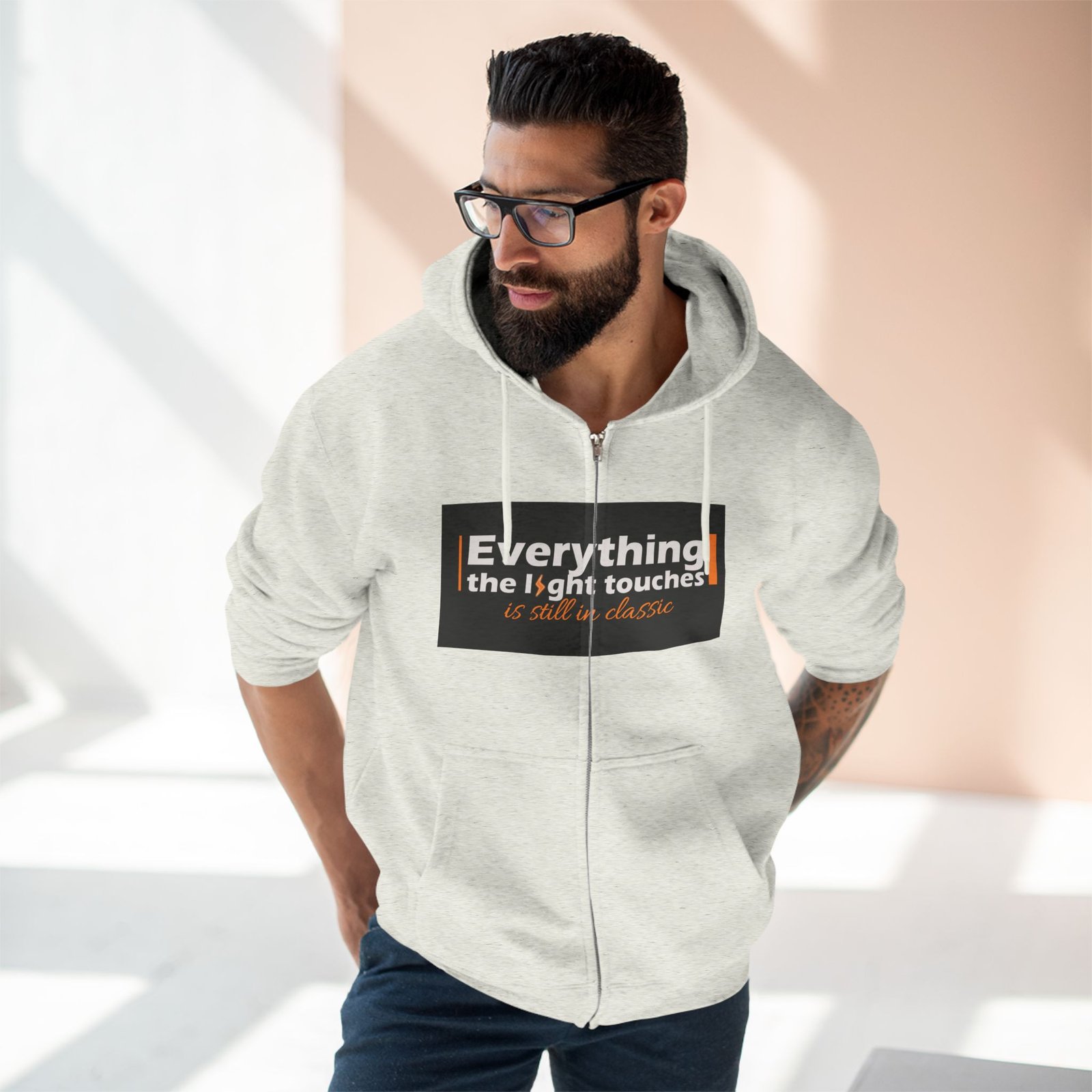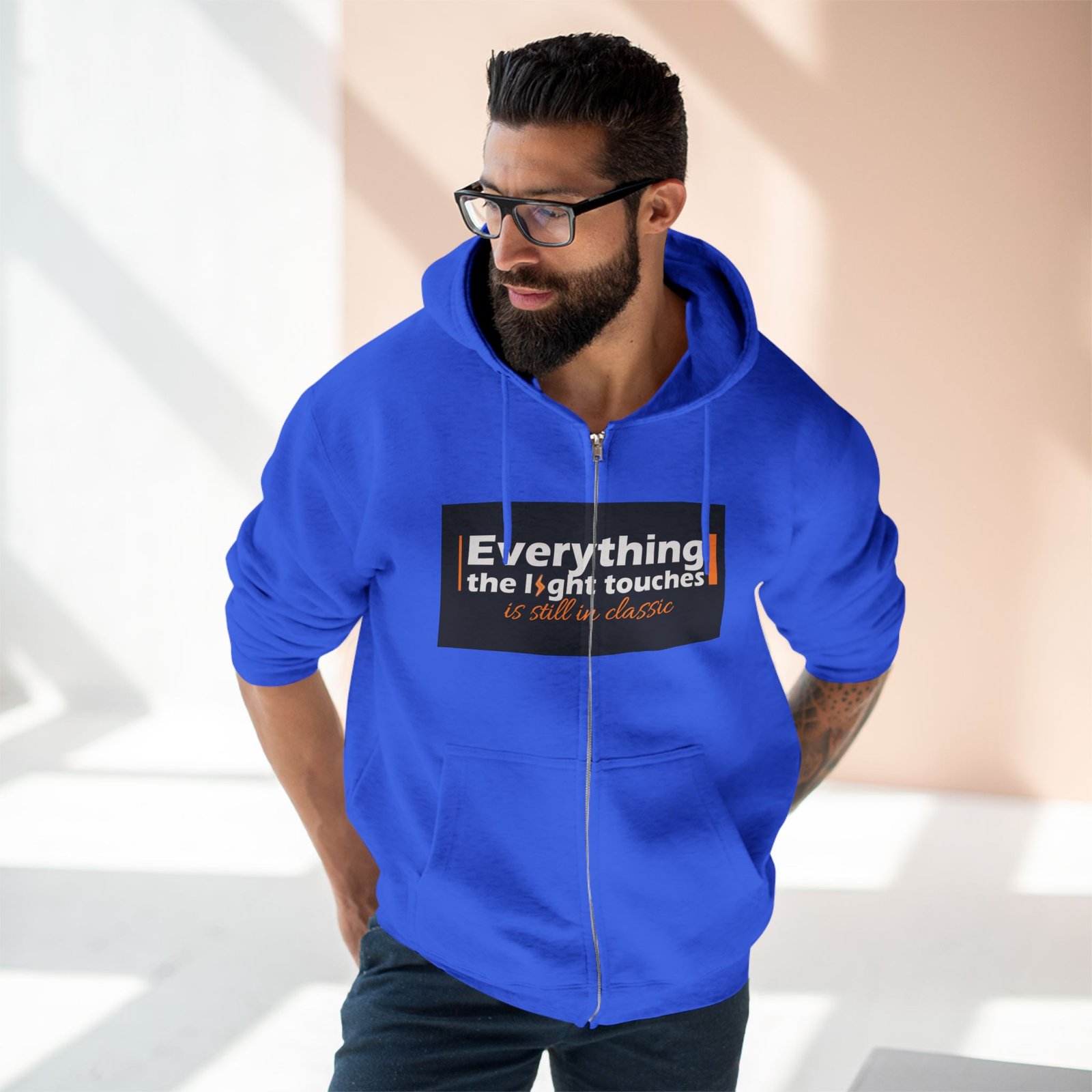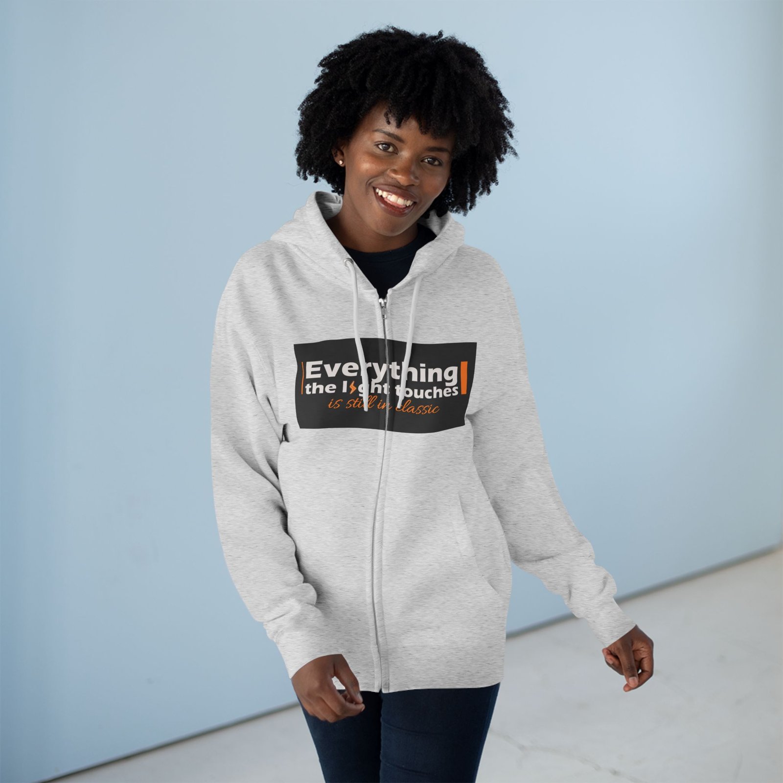 This unisex zip hoodie is your perfect companion for all-day comfort and style. Made from a soft blend of combed ringspun cotton and polyester, it offers a luxurious feel that will make you want to wear it everywhere. The adjustable hood and spacious kangaroo pocket are ideal for keeping cozy during chilly evenings or casual outings. With its crisp, detailed prints on both the front and back, this hoodie makes a bold statement that resonates with creativity and warmth.