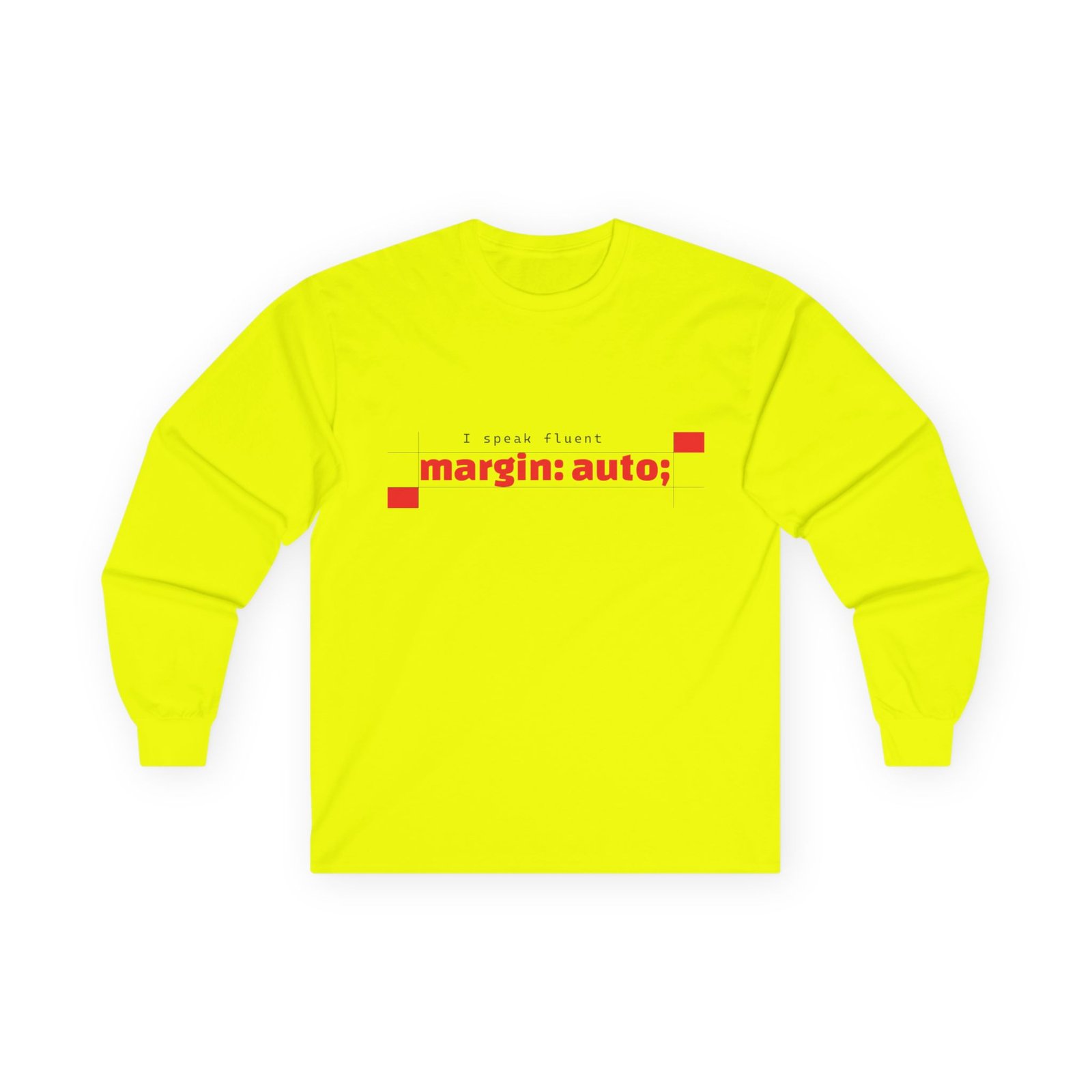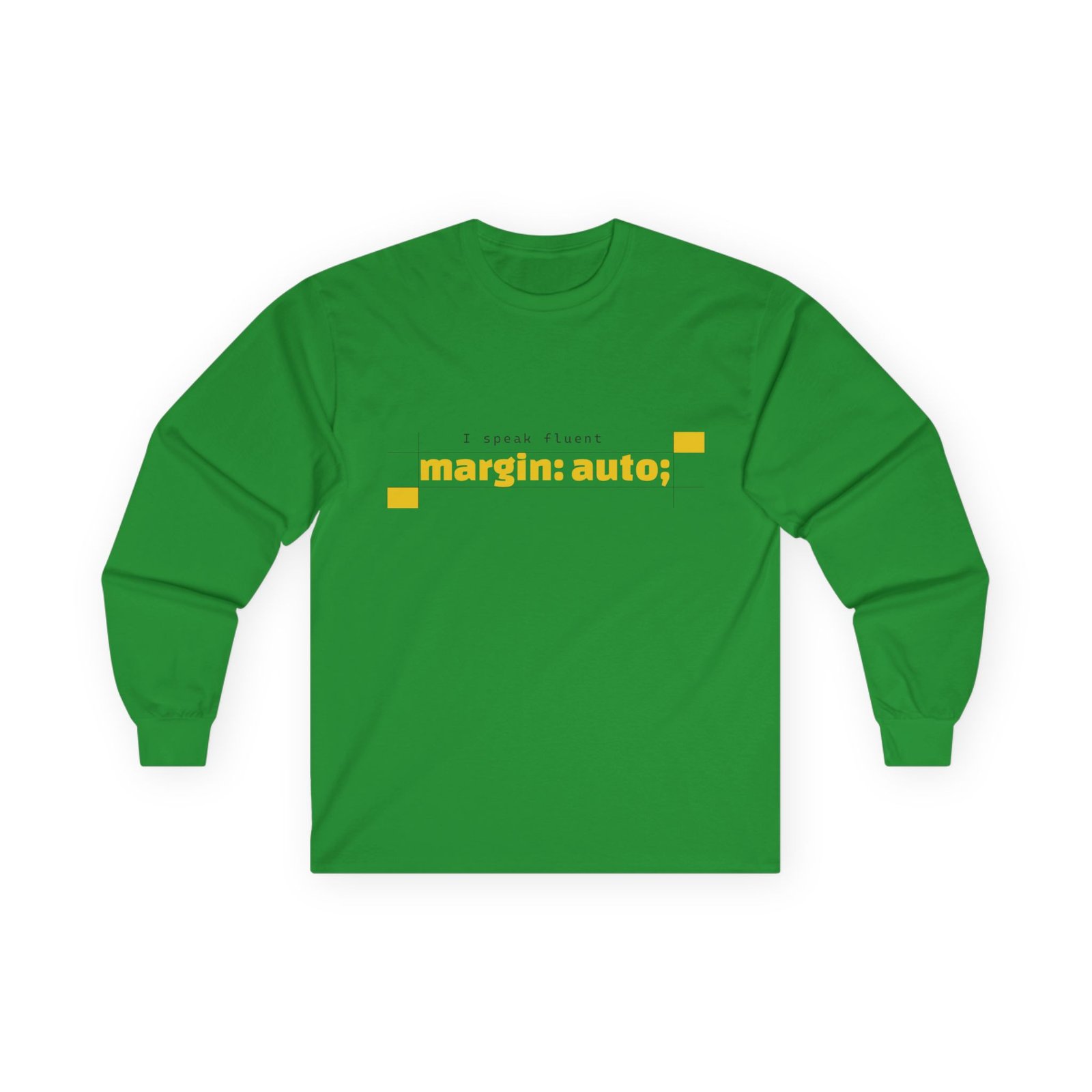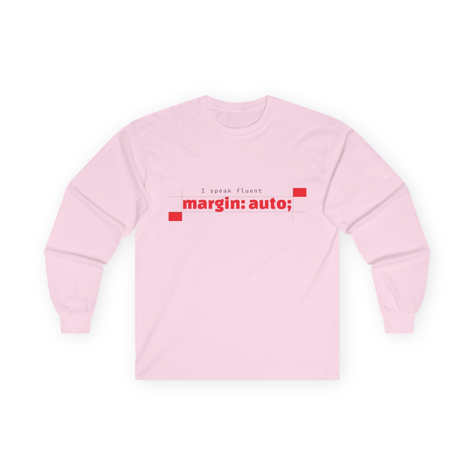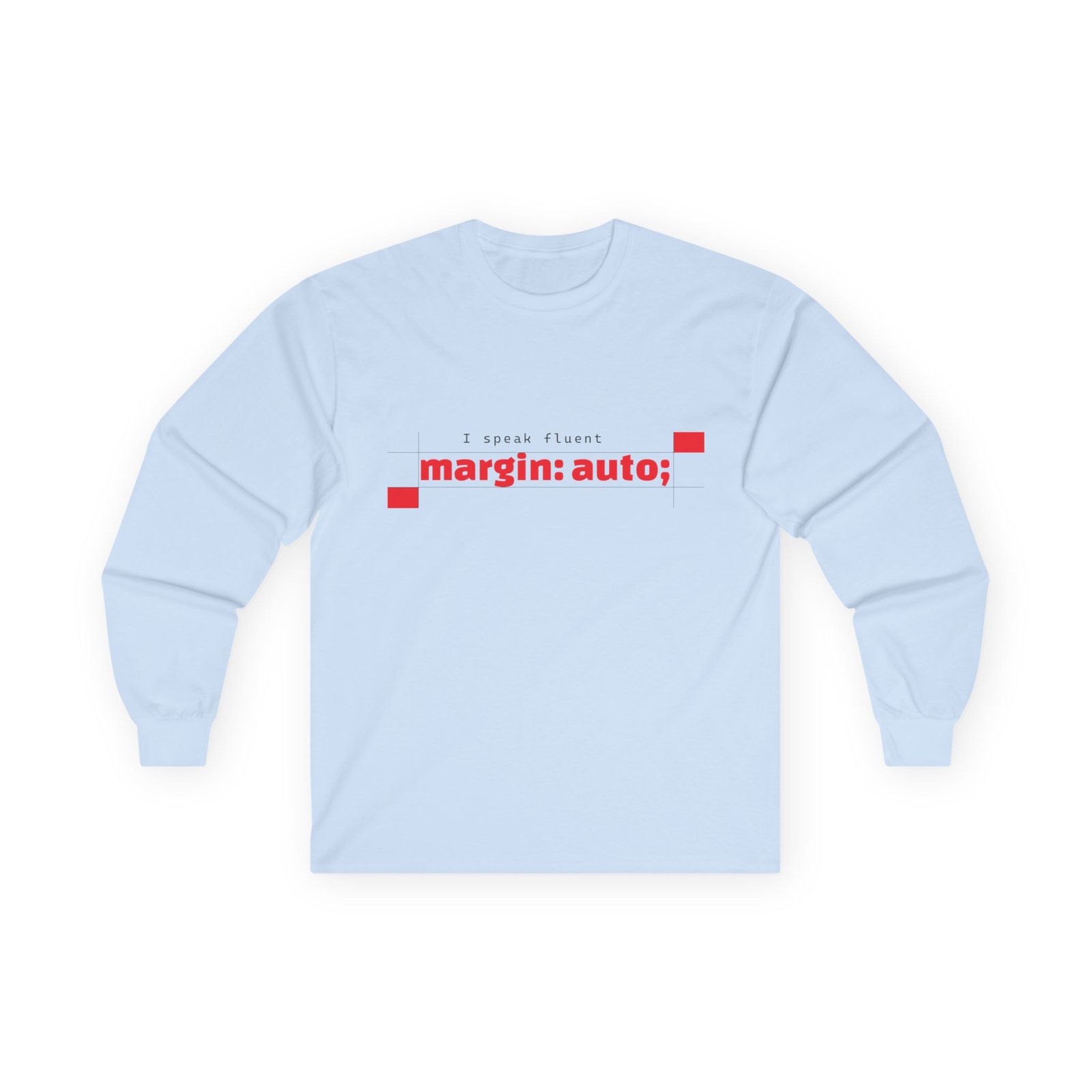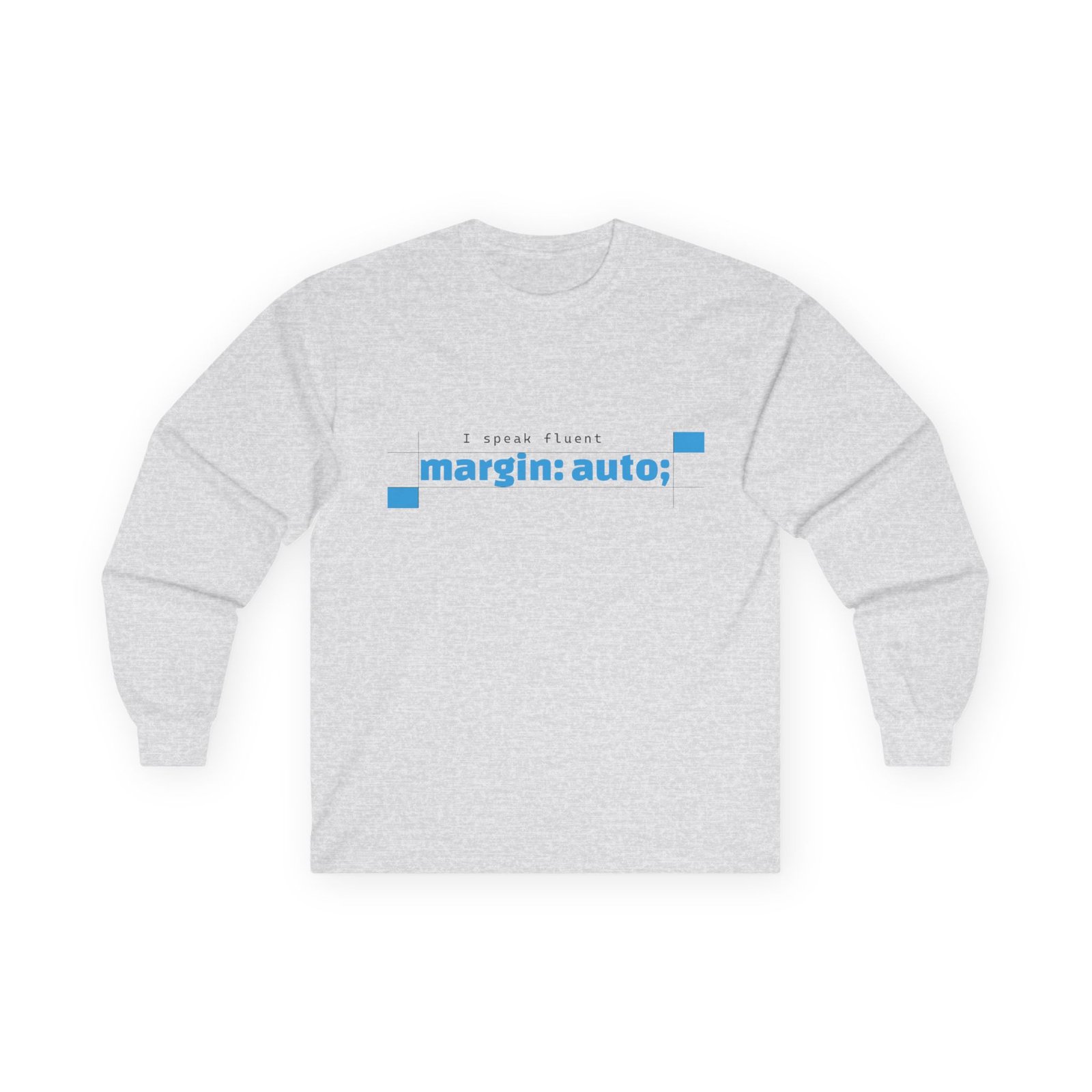 Soft, vintage-weight long sleeve that speaks fluent frontend. This classic-fit tee carries a clean, minimalist print—“margin: auto;” in a calm blue—so you can wear a tiny inside joke about layout and balance without shouting. The thicker, eco-friendly cotton and tubular knit give it that lived-in drape that sits comfortably over hoodies or under a jacket. Sleeved cuffs and shoulder-tape keep the shape steady after repeated wears and washes. It’s for nights debugging layouts, chilled coworking sessions, and meetups where the conversation drifts from scaling to semantics. Slightly smaller fit—consider sizing up if you like a relaxed silhouette.