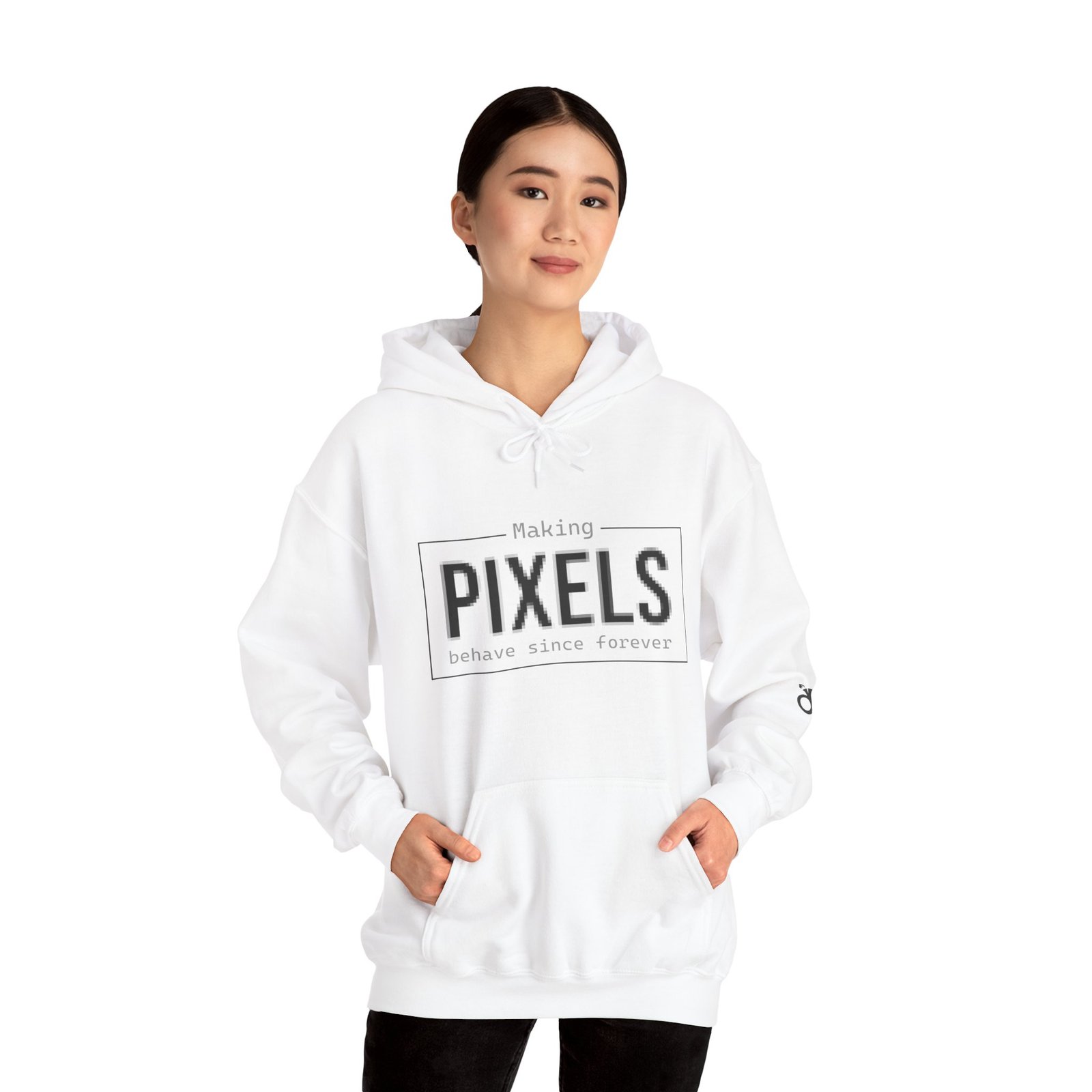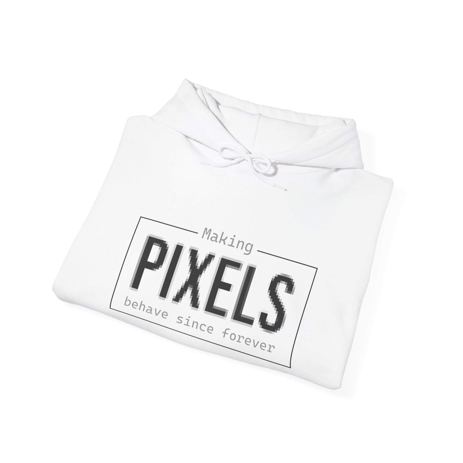A soft, mid-weight hoodie crafted for makers, designers, and pixel lovers who live by late-night edits and coffee-fueled sprints. The clean white canvas features a minimal, framed “PIXELS” front print with subtle tagline detail and a small, tasteful sleeve mark — a quiet nod to digital craft. The roomy kangaroo pocket, double-lined hood with color-matched drawcord, and tear-away label keep comfort practical; durable 50/50 cotton-poly fabric holds prints and shape through frequent wear. Wear it while sketching interfaces, critiquing colors, or heading out for a casual meet-up — it feels familiar and functional every step of the way.