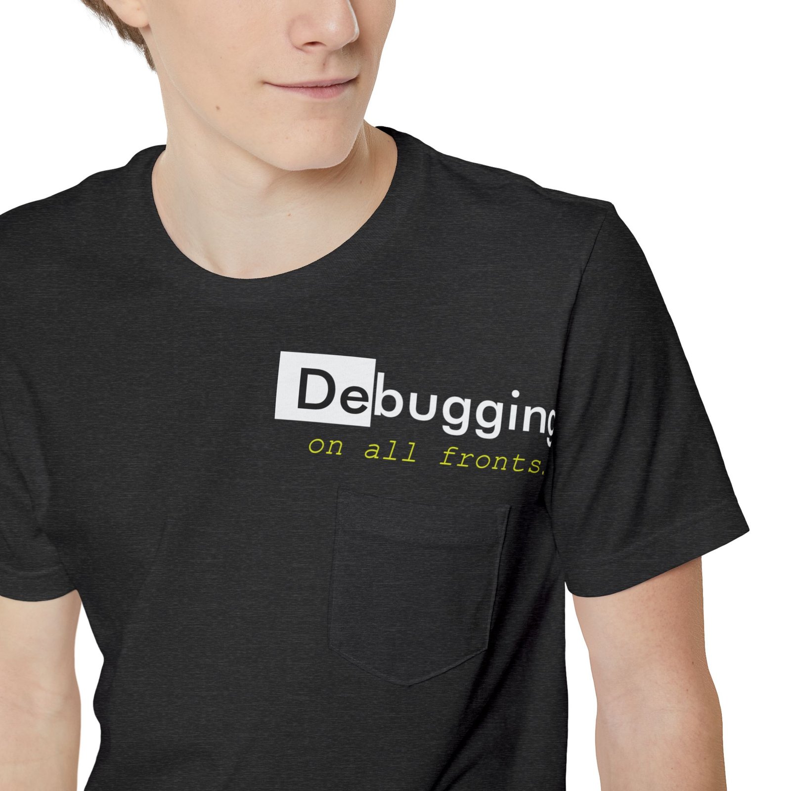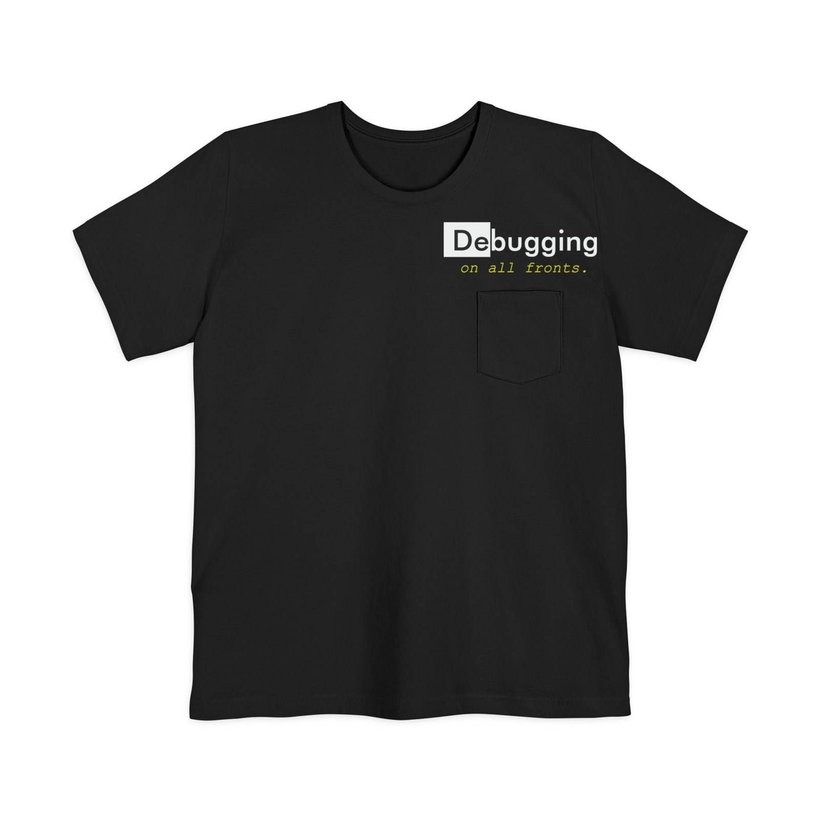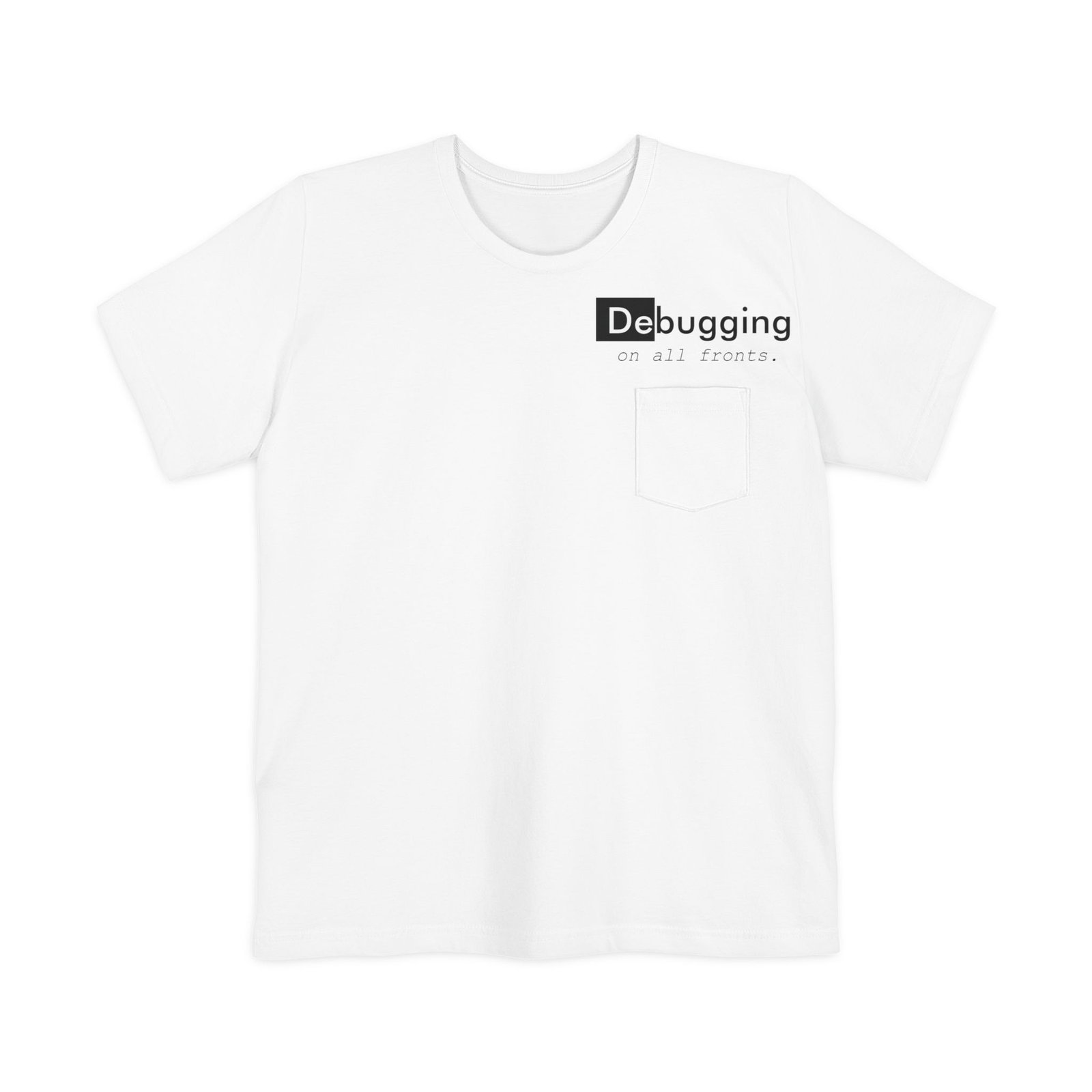 A lightweight pocket tee that feels like a quiet nod to long coding nights and small victories. Soft, airy cotton drapes easily while a subtle left-chest pocket and low-key “Debugging” design sit where you glance when thinking through a problem. Wear it with jeans or under a hoodie while pairing code reviews with coffee. It’s unobtrusive, readable, and built for comfort during focused sprints or slow weekend tinkering.