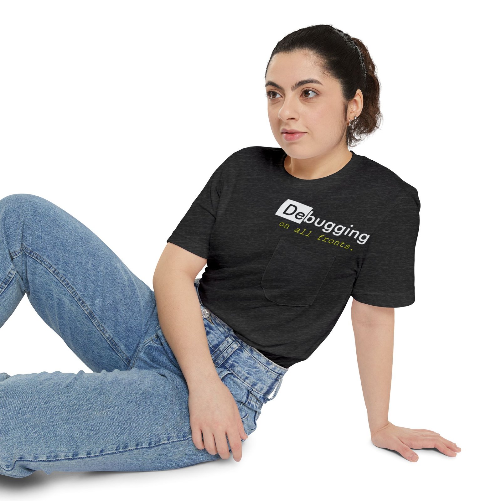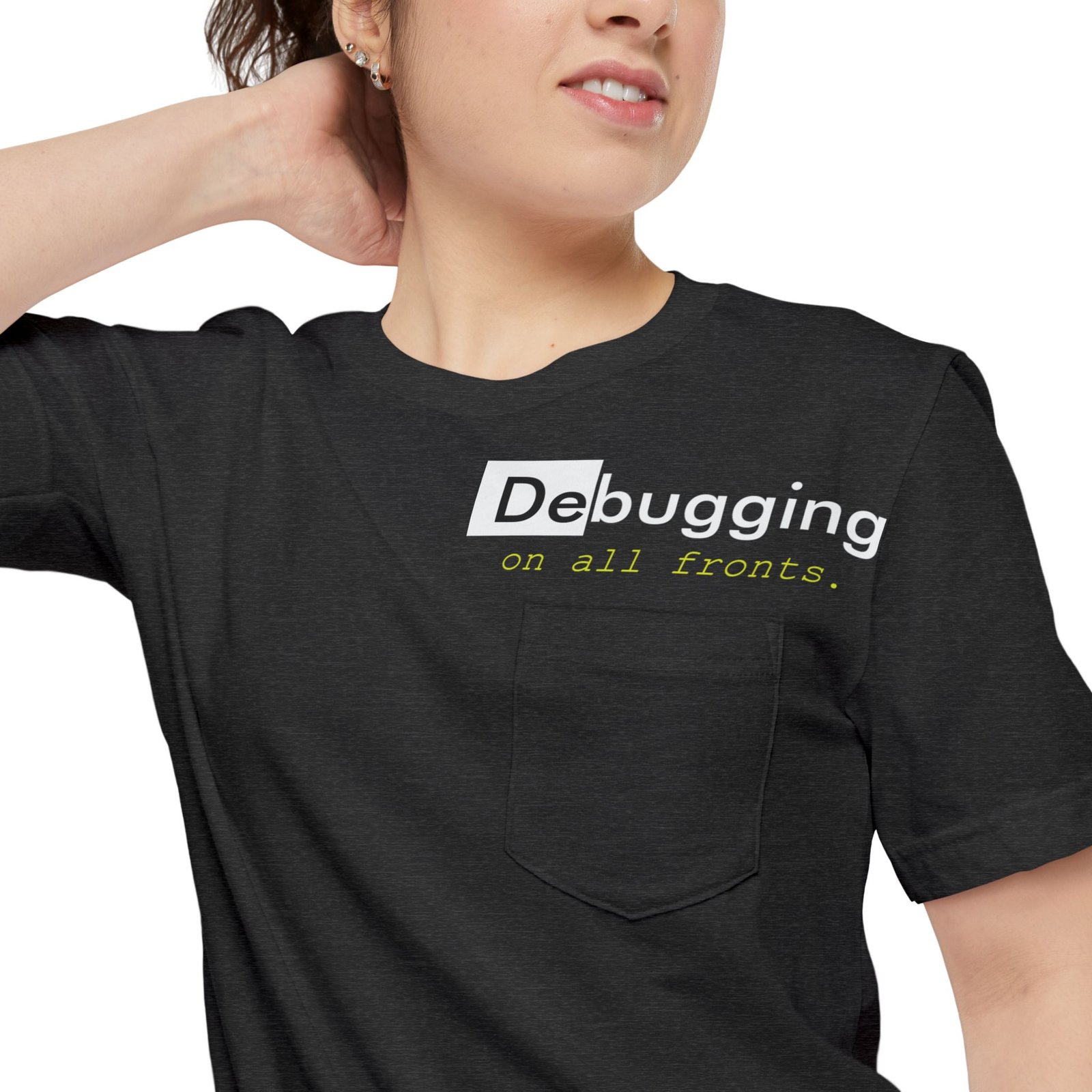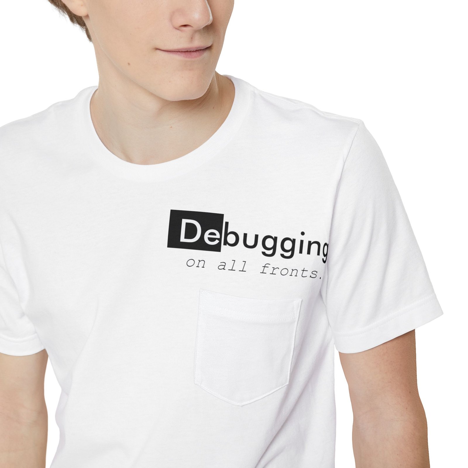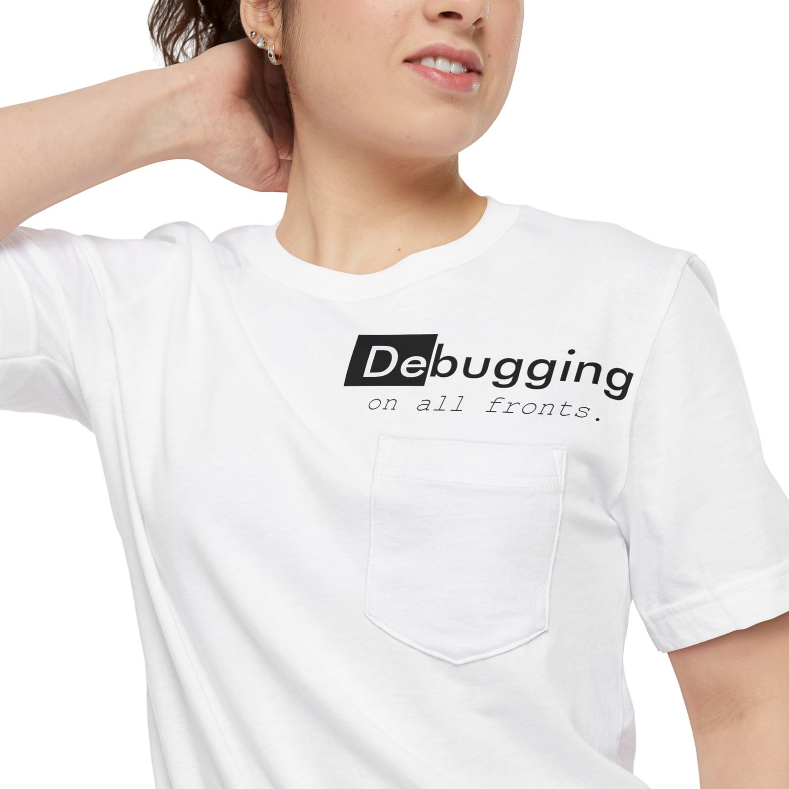 A lightweight pocket tee that feels like a quiet nod to long coding nights and small victories. Soft, airy cotton drapes easily while a subtle left-chest pocket and low-key “Debugging” design sit where you glance when thinking through a problem. Wear it with jeans or under a hoodie while pairing code reviews with coffee. It’s unobtrusive, readable, and built for comfort during focused sprints or slow weekend tinkering.