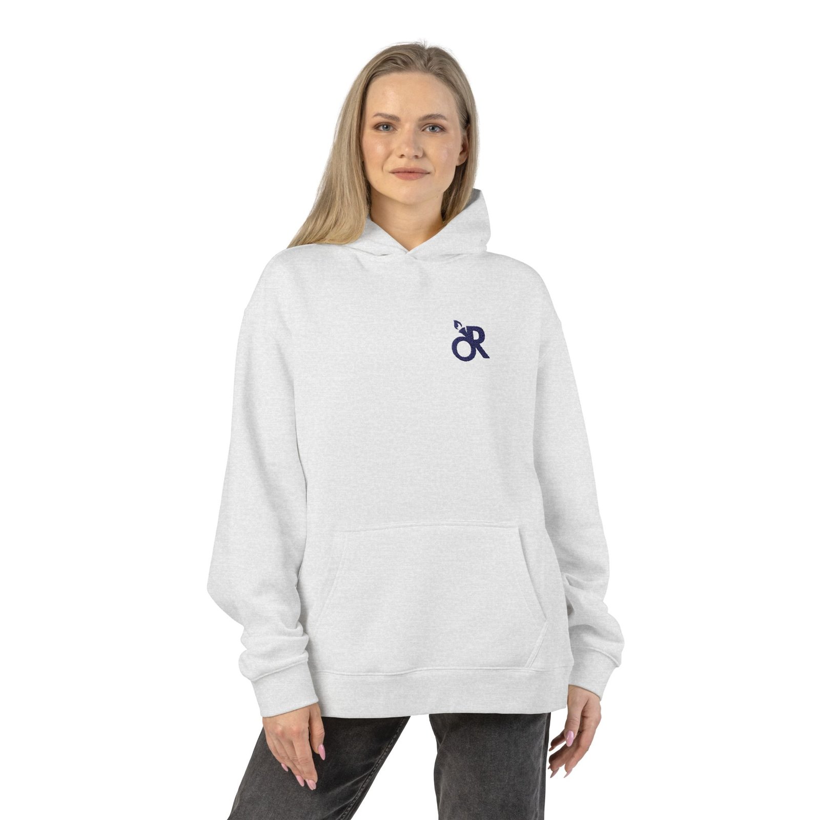 This relaxed hoodie feels like a quiet morning wrapped in cloud-soft fabric. The medium-heavy cotton blend has weight without stiffness — it settles into a laid-back silhouette that invites you to slow down. A neat, embroidered emblem sits on the chest, keeping the look minimal and thoughtful. The drop shoulder and roomy kangaroo pocket make it easy to slip into after a commute, between errands, or when you’re settling in with a book. Stretch the hood up against a chill or fold it back to show the clean neckline. It’s an everyday layer that reads calm and considered, built to move through small rituals: coffee in the kitchen, a slow walk, late-night emails, or weekend studio hours.