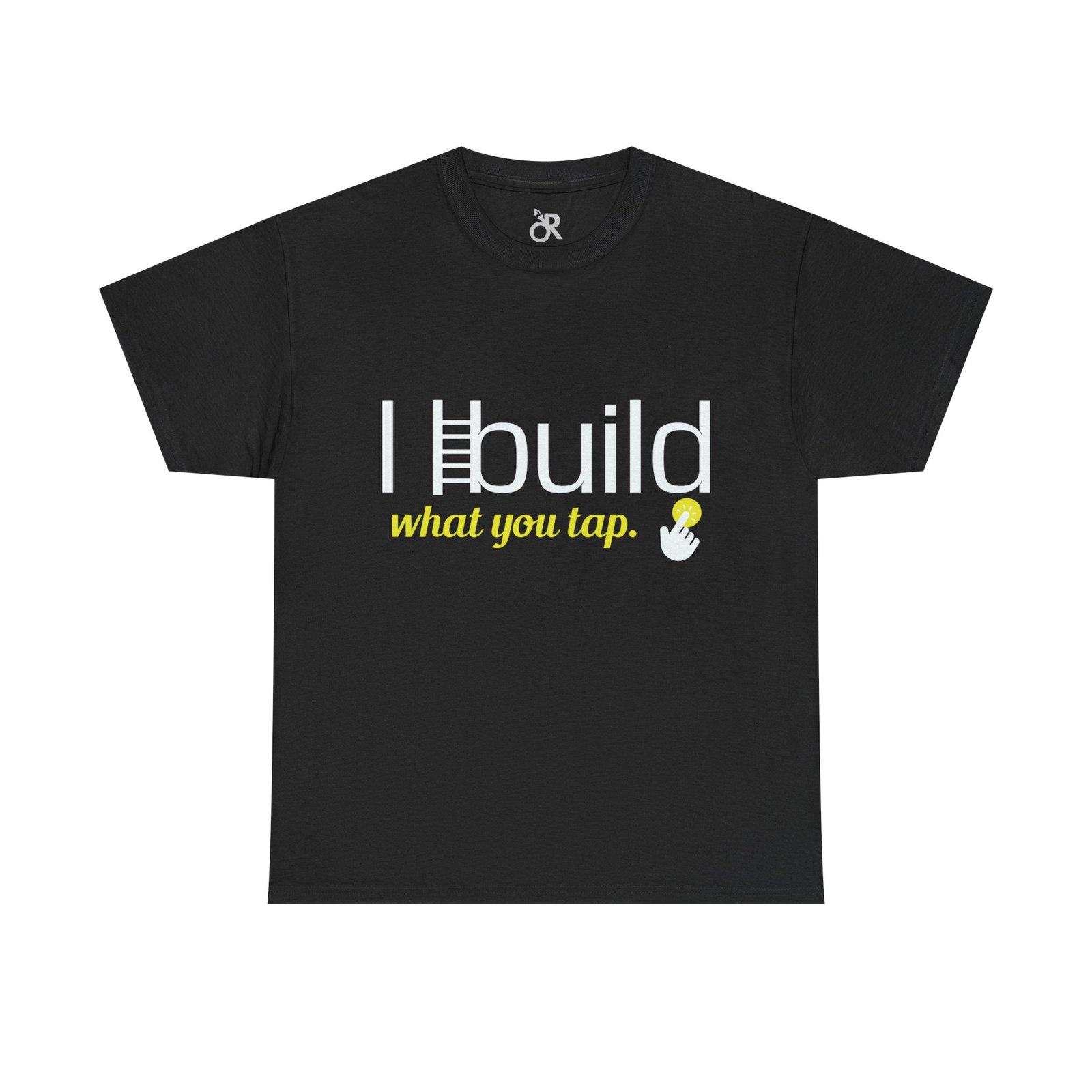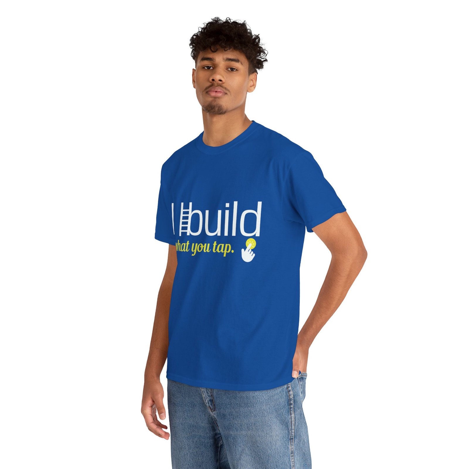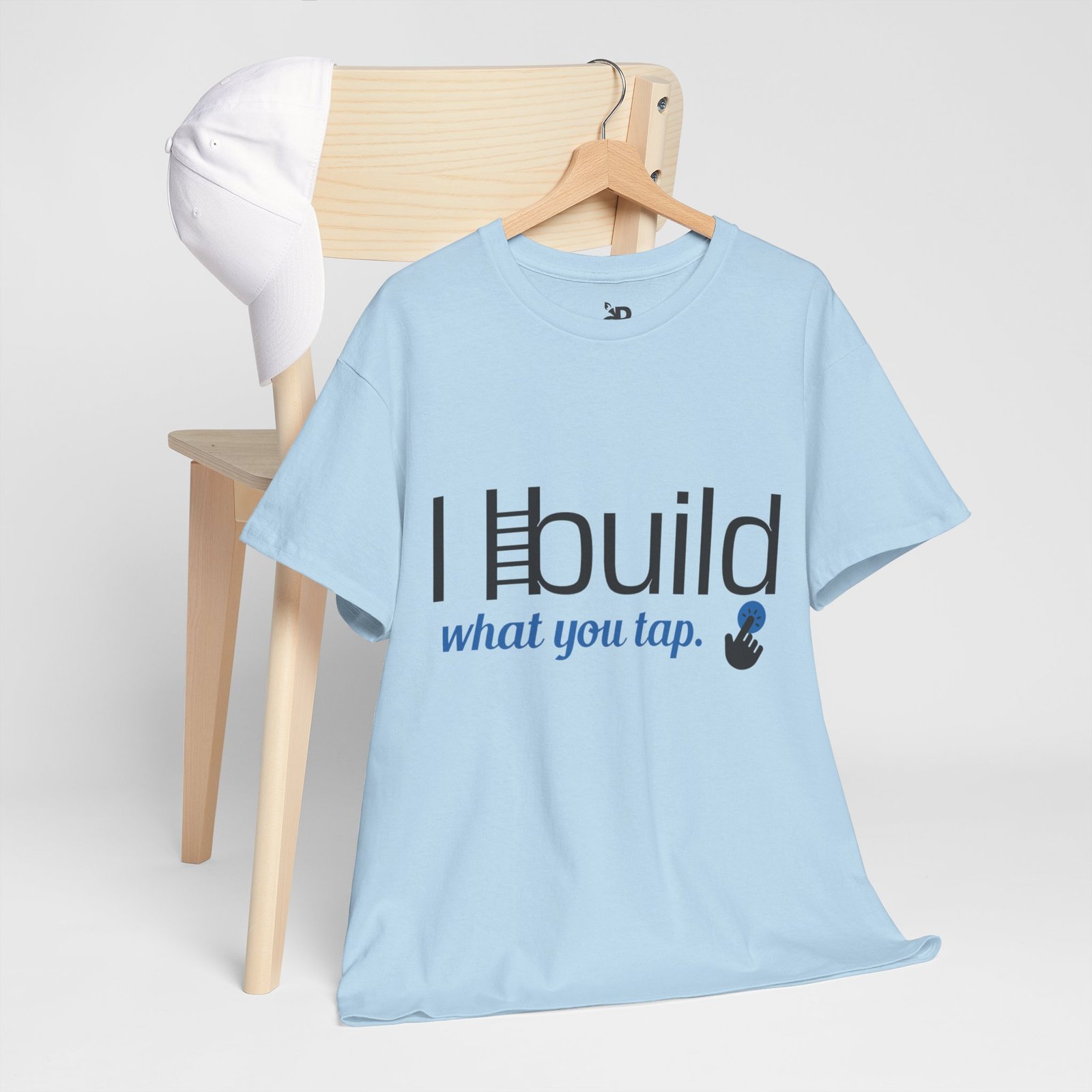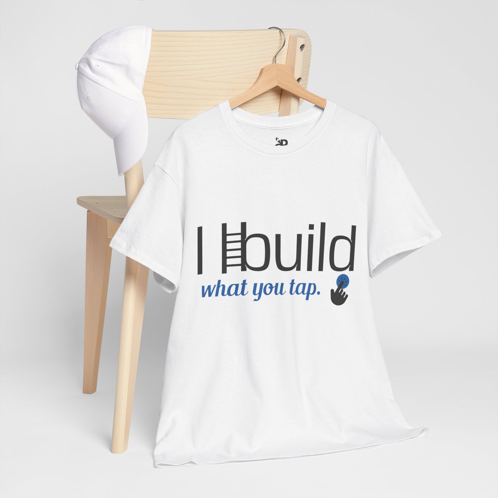 Soft, breathable, and built for long days at the desk or on site — this tee quietly says what you do. A clean, tech-forward design reads “I build what you tap.” with a small cursor icon, subtle and clever for developers, UX designers, product engineers, and builders of digital experiences. The medium-weight cotton feels steady against the skin and wears well through sprints, standups, and late-night debugging sessions. It layers easily under hoodies or jackets and keeps its shape thanks to reinforced shoulder tape and a resilient ribbed collar. Wear it to hackathons, meetups, or casual office days to show your craft without shouting.