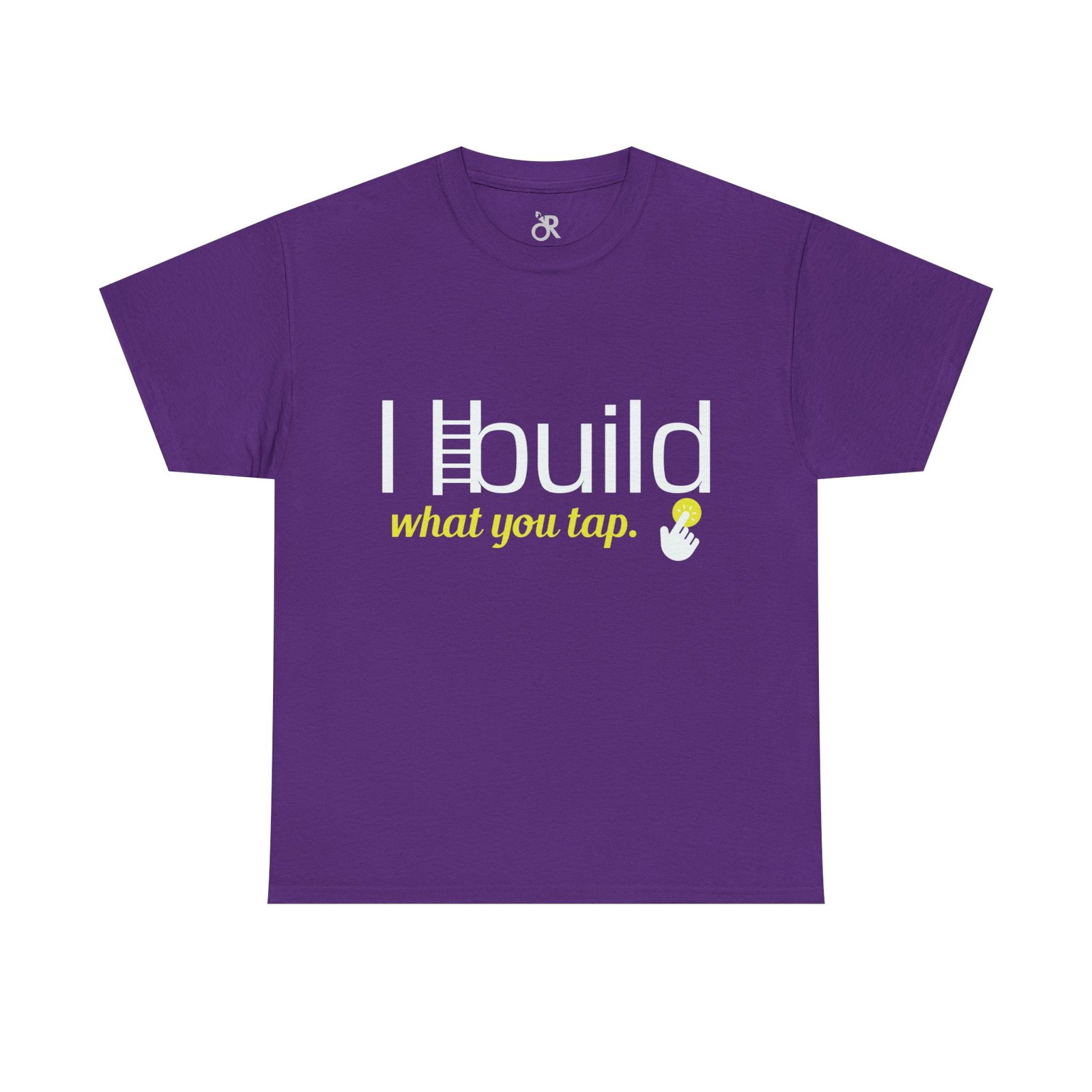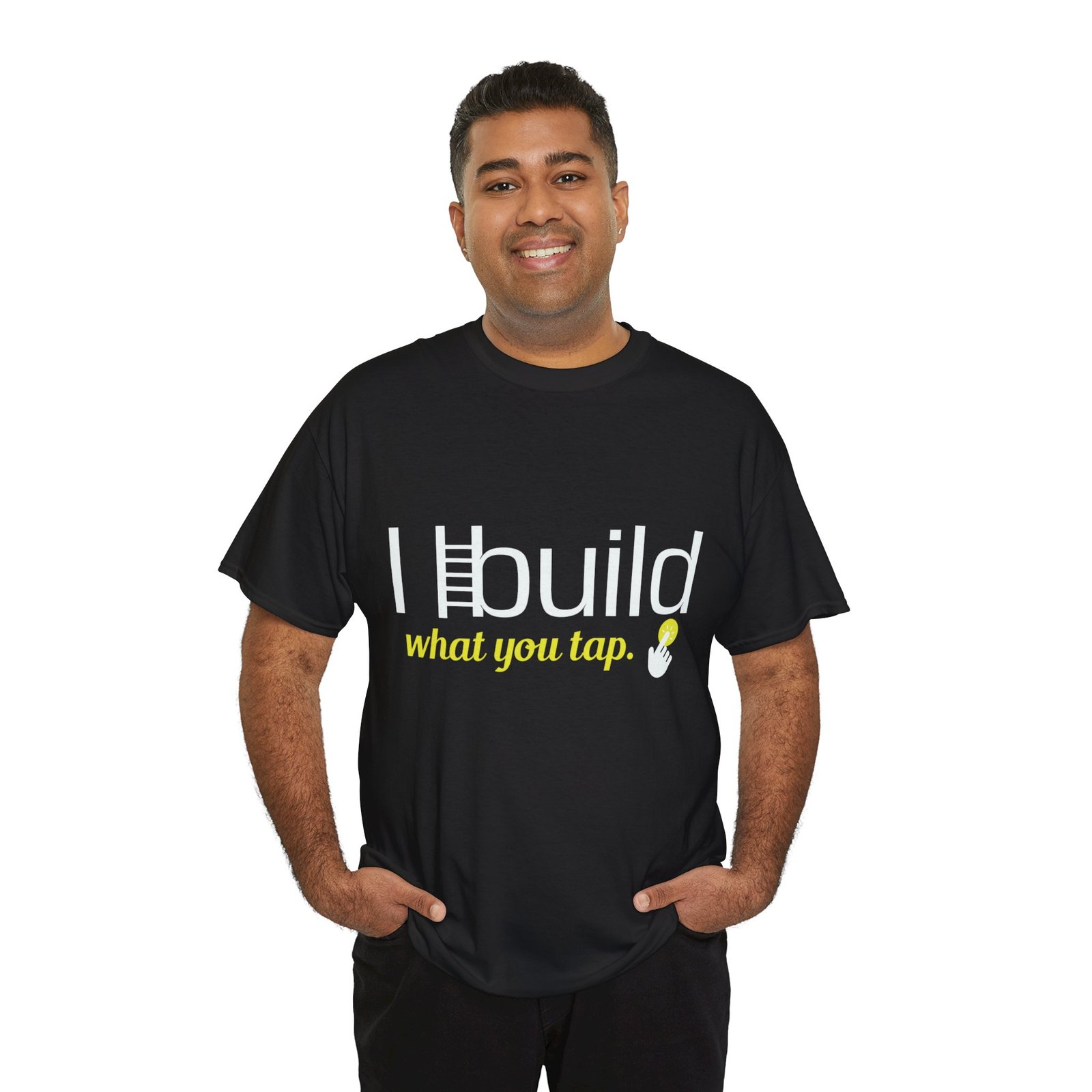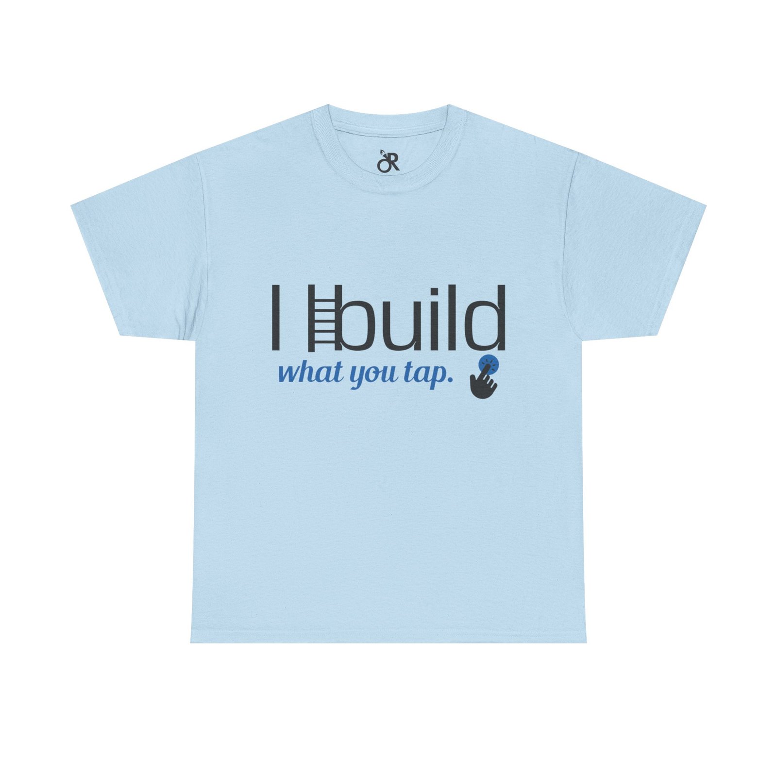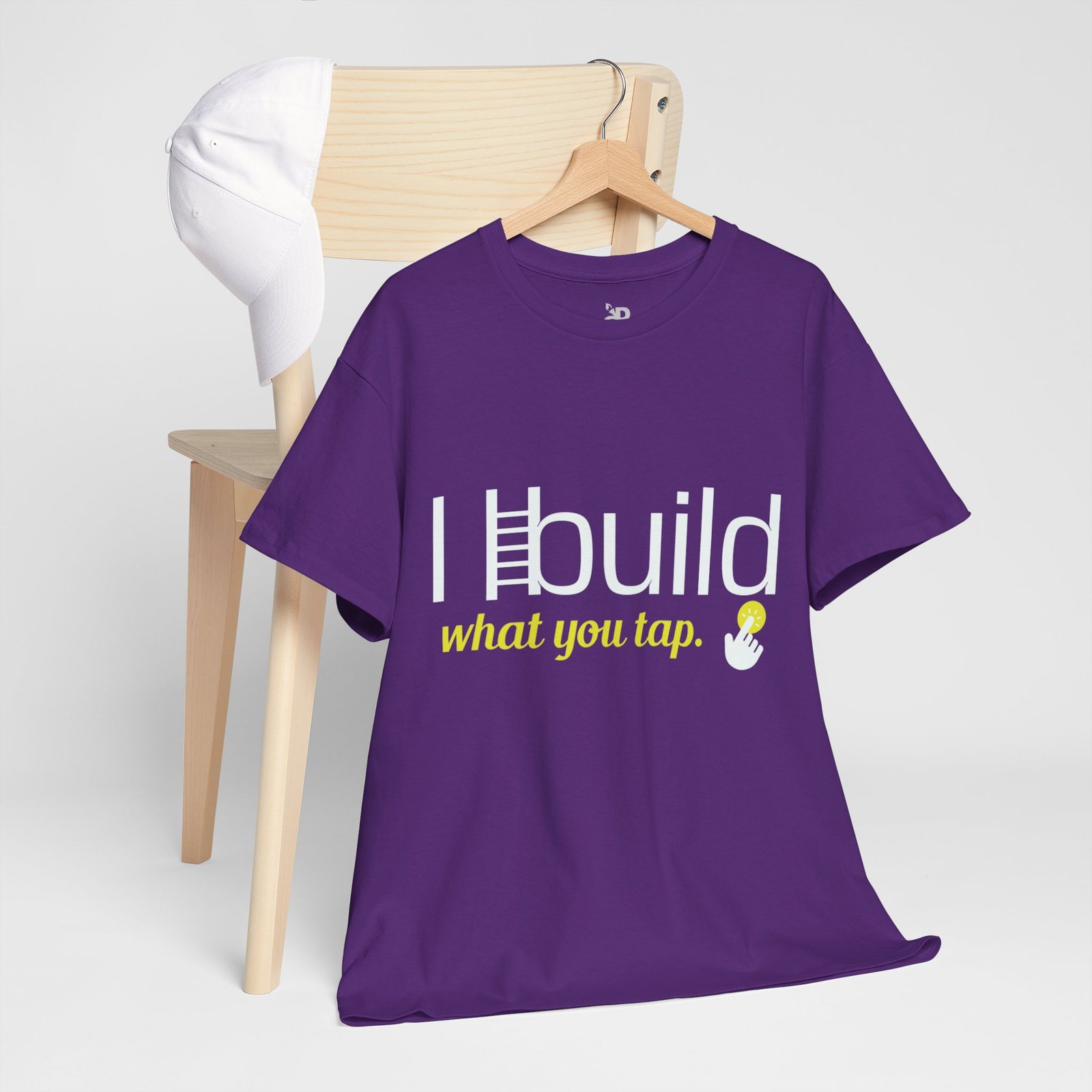 Soft, breathable, and built for long days at the desk or on site — this tee quietly says what you do. A clean, tech-forward design reads “I build what you tap.” with a small cursor icon, subtle and clever for developers, UX designers, product engineers, and builders of digital experiences. The medium-weight cotton feels steady against the skin and wears well through sprints, standups, and late-night debugging sessions. It layers easily under hoodies or jackets and keeps its shape thanks to reinforced shoulder tape and a resilient ribbed collar. Wear it to hackathons, meetups, or casual office days to show your craft without shouting.