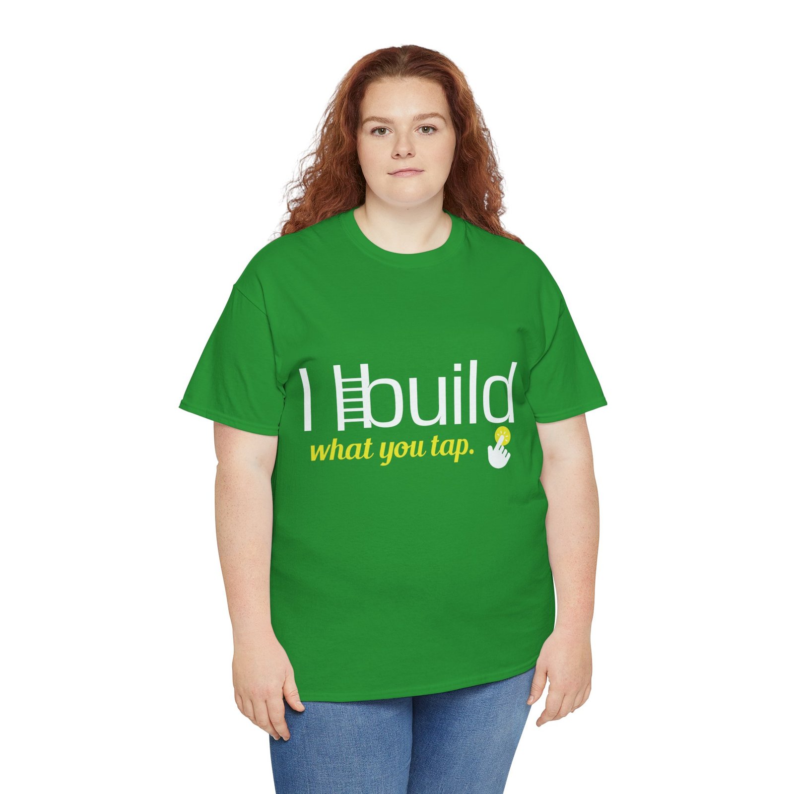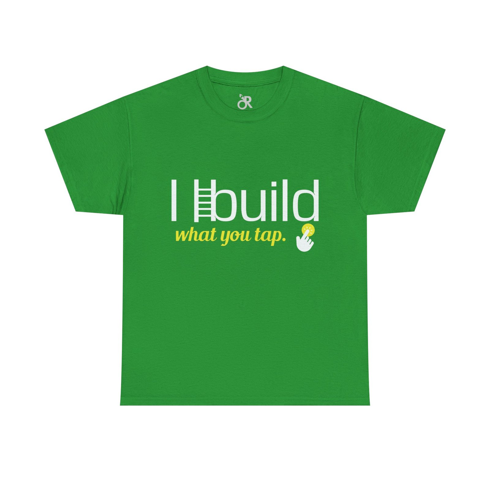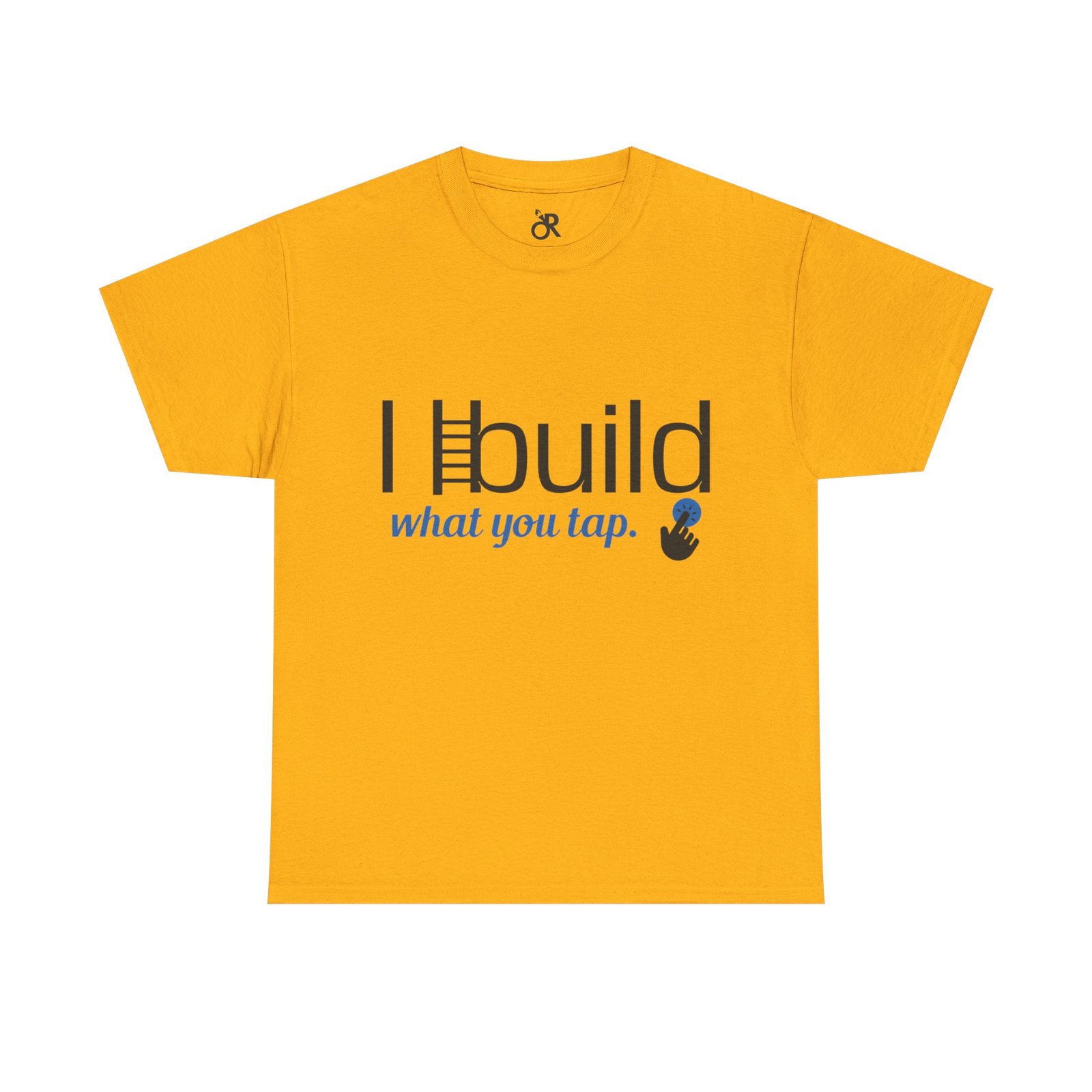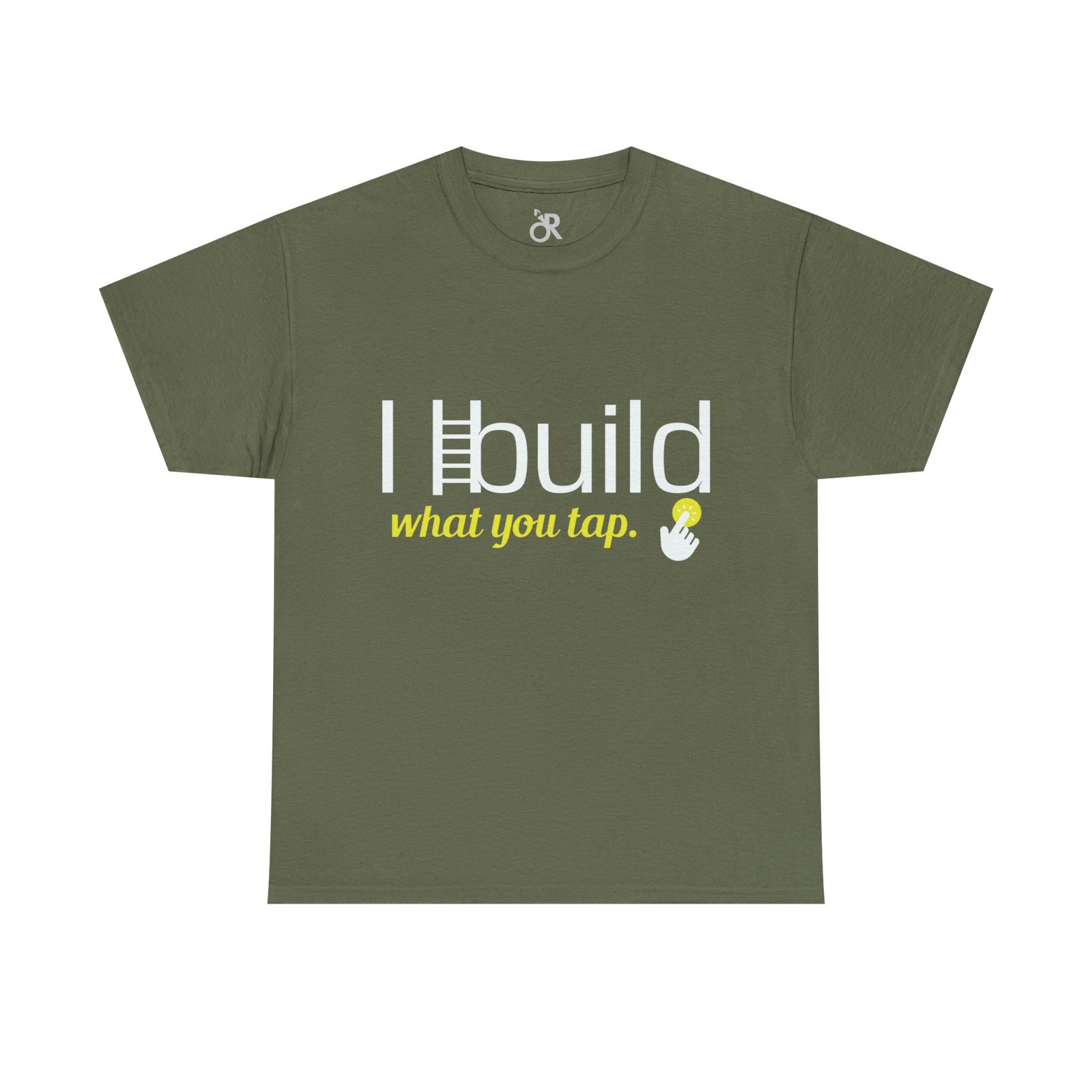 Soft, breathable, and built for long days at the desk or on site — this tee quietly says what you do. A clean, tech-forward design reads “I build what you tap.” with a small cursor icon, subtle and clever for developers, UX designers, product engineers, and builders of digital experiences. The medium-weight cotton feels steady against the skin and wears well through sprints, standups, and late-night debugging sessions. It layers easily under hoodies or jackets and keeps its shape thanks to reinforced shoulder tape and a resilient ribbed collar. Wear it to hackathons, meetups, or casual office days to show your craft without shouting.