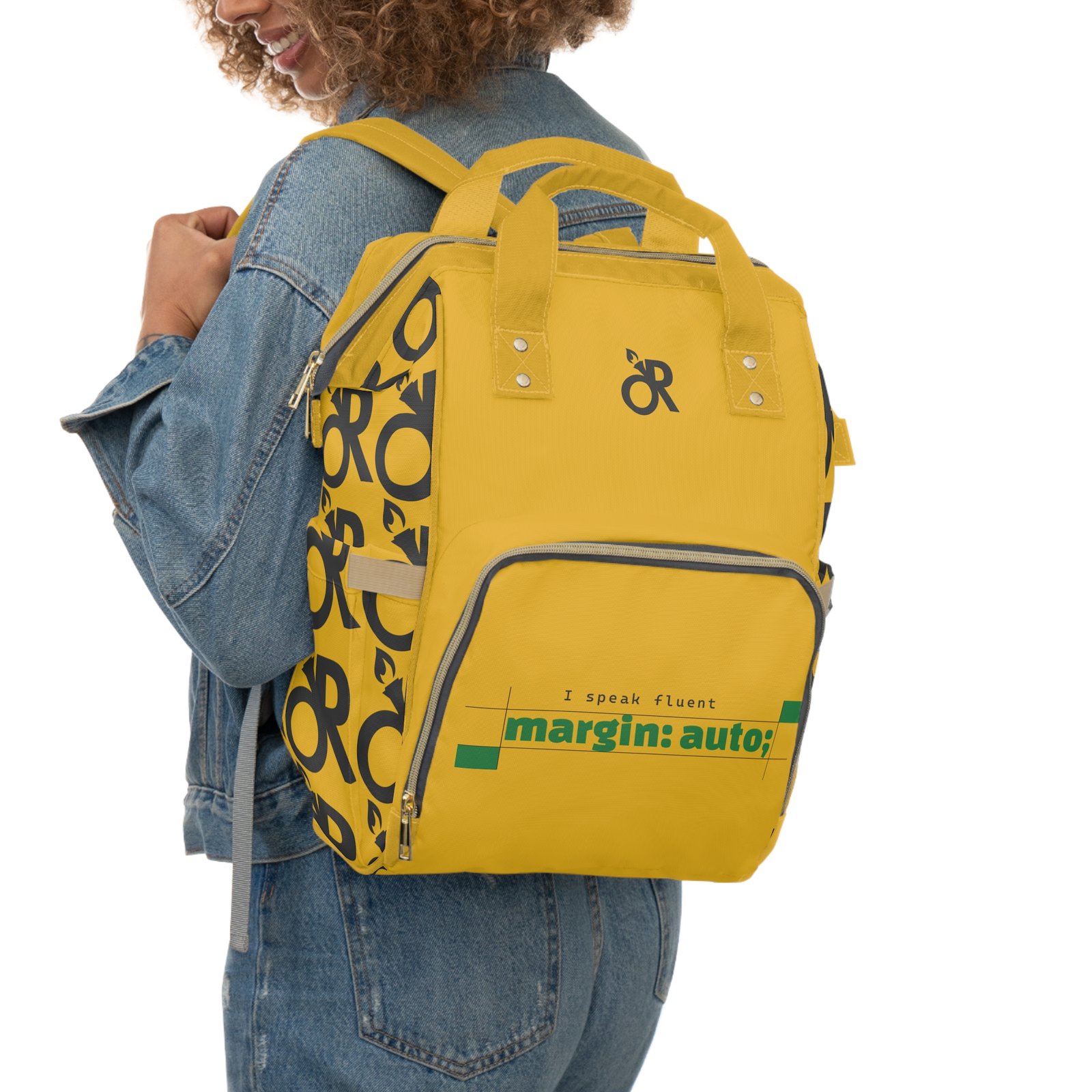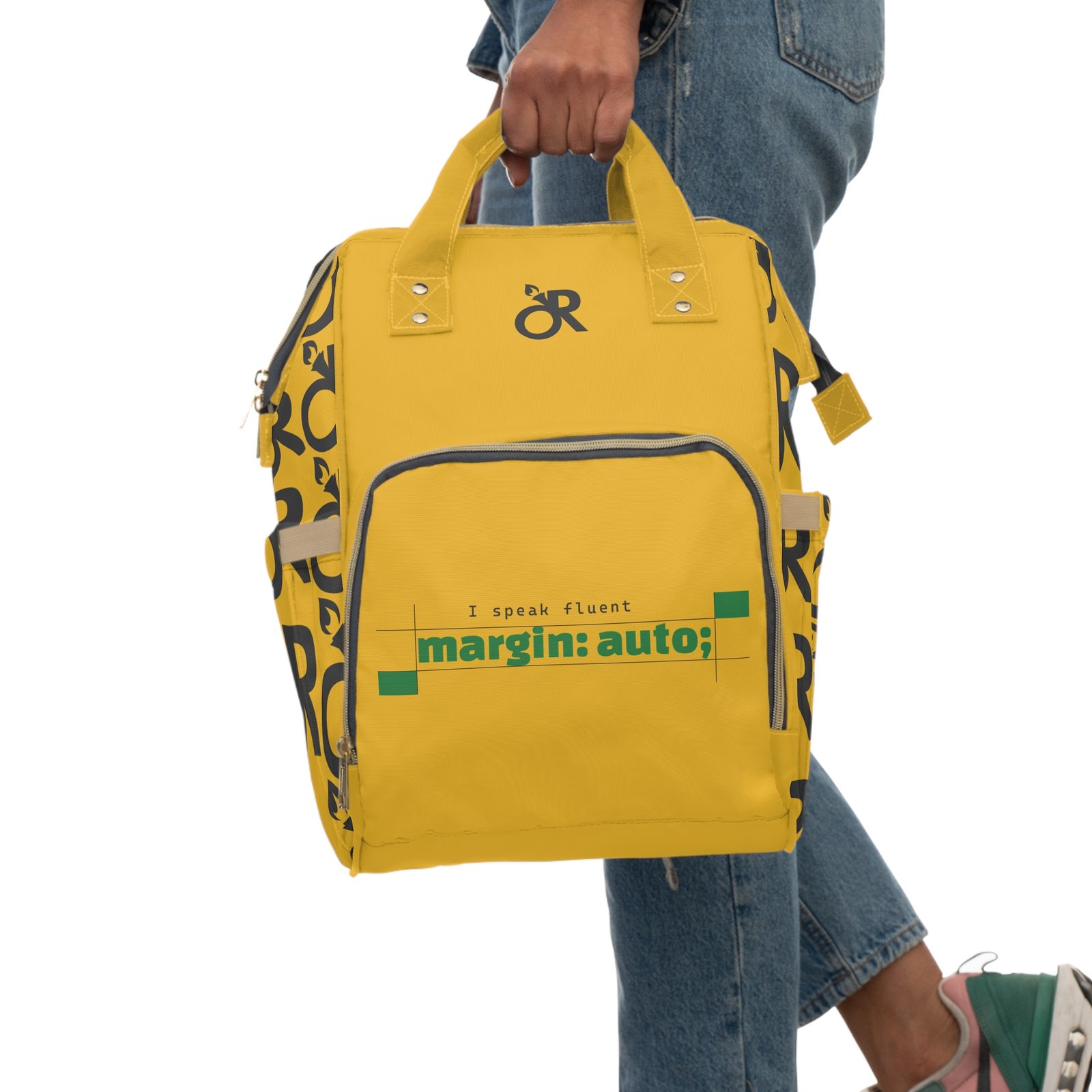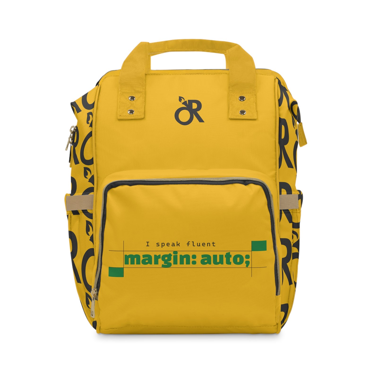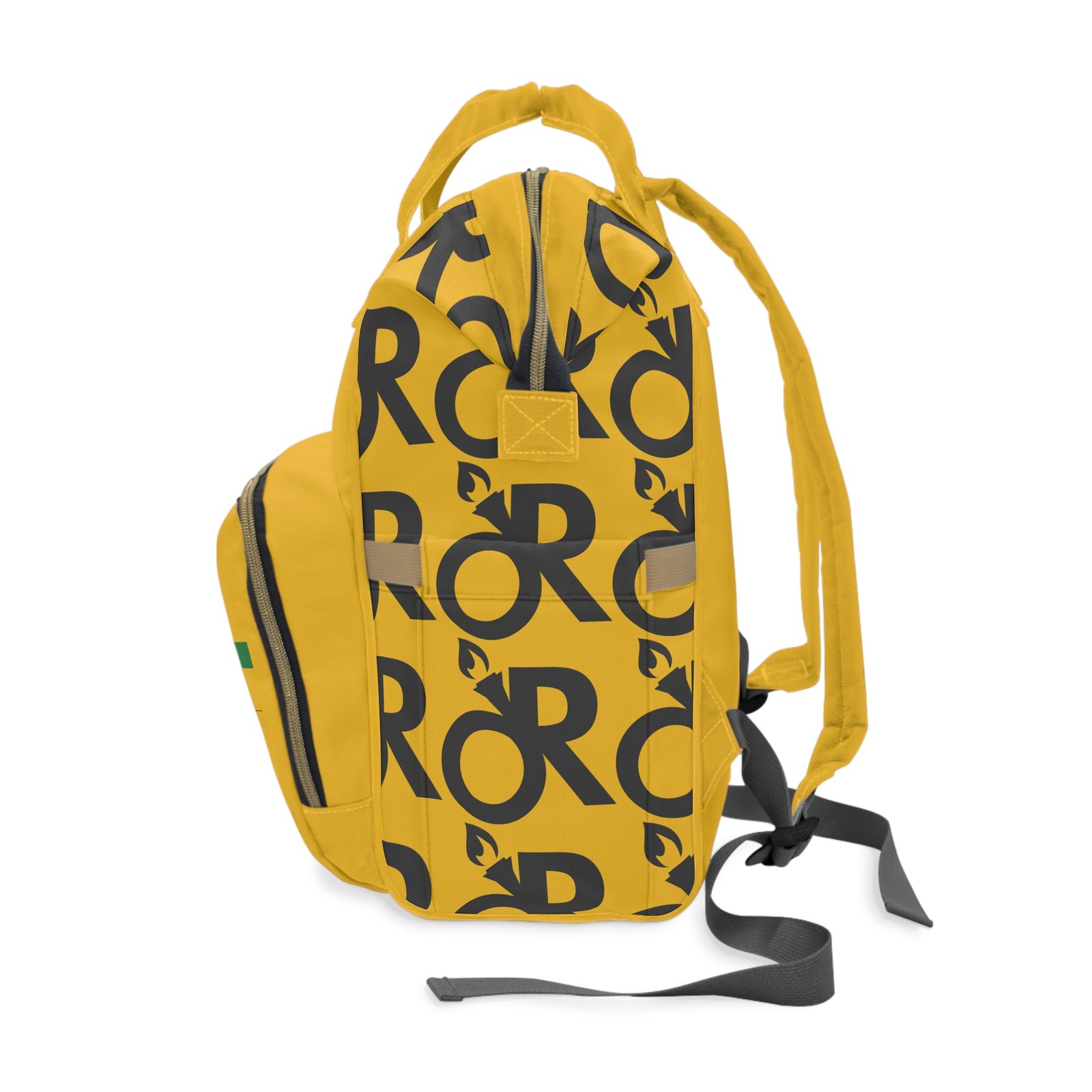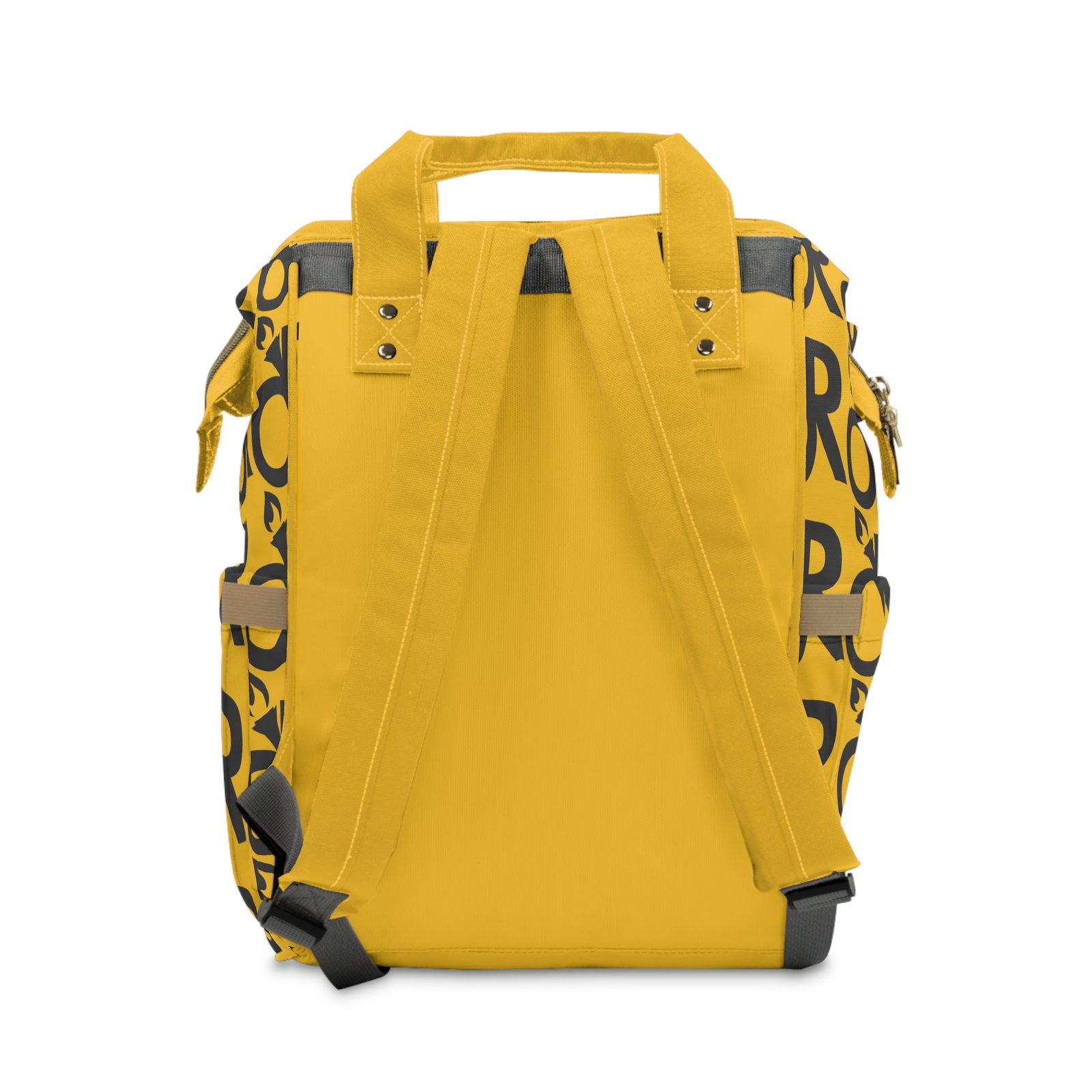 Bright, sturdy, and built for the small-but-mighty chaos of parenting life. This multifunctional diaper backpack is crafted from heavy-duty 1200D nylon with a soft cream lining, so baby messes, snacks, and gear slide in and out without fuss. Multiple pockets — a roomy zippered main compartment, interior zip and open pockets, two exterior bottle slots and a front zip pocket — keep diapers, wipes, toys, and your laptop or tablet organized and ready. Padded back and adjustable shoulder straps make longer outings easier. The vibrant print and bold yellow color give it personality so you don’t have to hide the practical stuff; this bag looks like you, not a utility sack. Use it for park mornings, weekend road trips, quick runs to the cafe, or those long days when hands need to be free and everything still needs to be within reach.